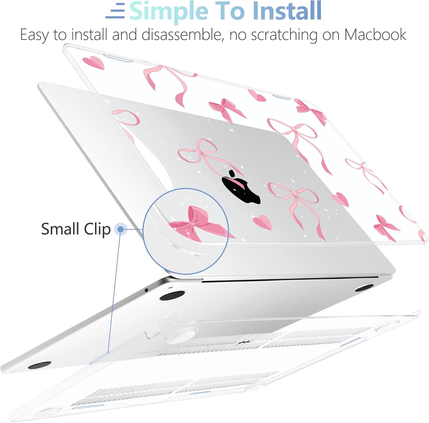 - Design Features of Case: The bottom case is designed with vents for maximum heat dissipation. The bottom case has non-slip feet to avoid slipping during use. The precise cutting design allows you to access all the ports of your MacBook. For Macbook air 2022 case is easy to install and remove