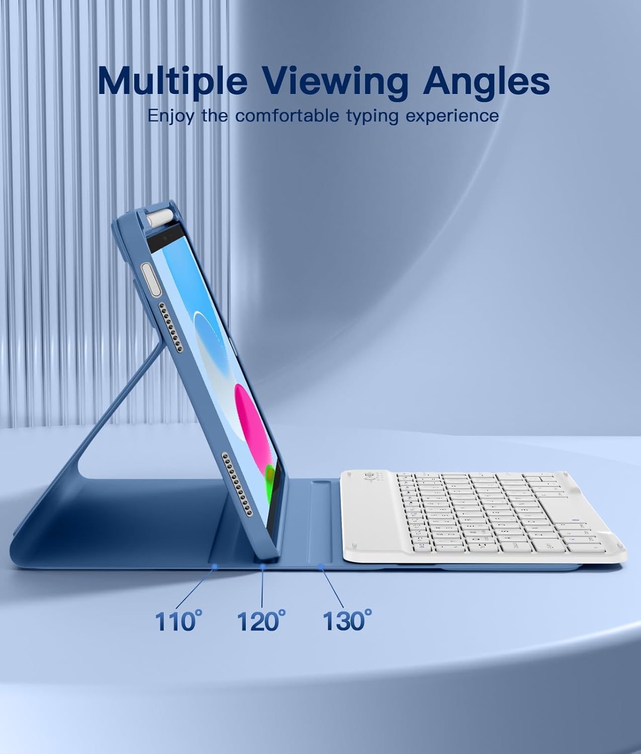 - Magnetic Wireless Keyboard: The detachable keyboard for iPad 10th generation magnetically attaches to the tablet cover with keyboard, making it easy to reposition the keyboard or remove it from the case. Compatible with IOS, Windows, and Android system, it features a variety of useful shortcuts that instantly turn your tablet into a portable laptop
