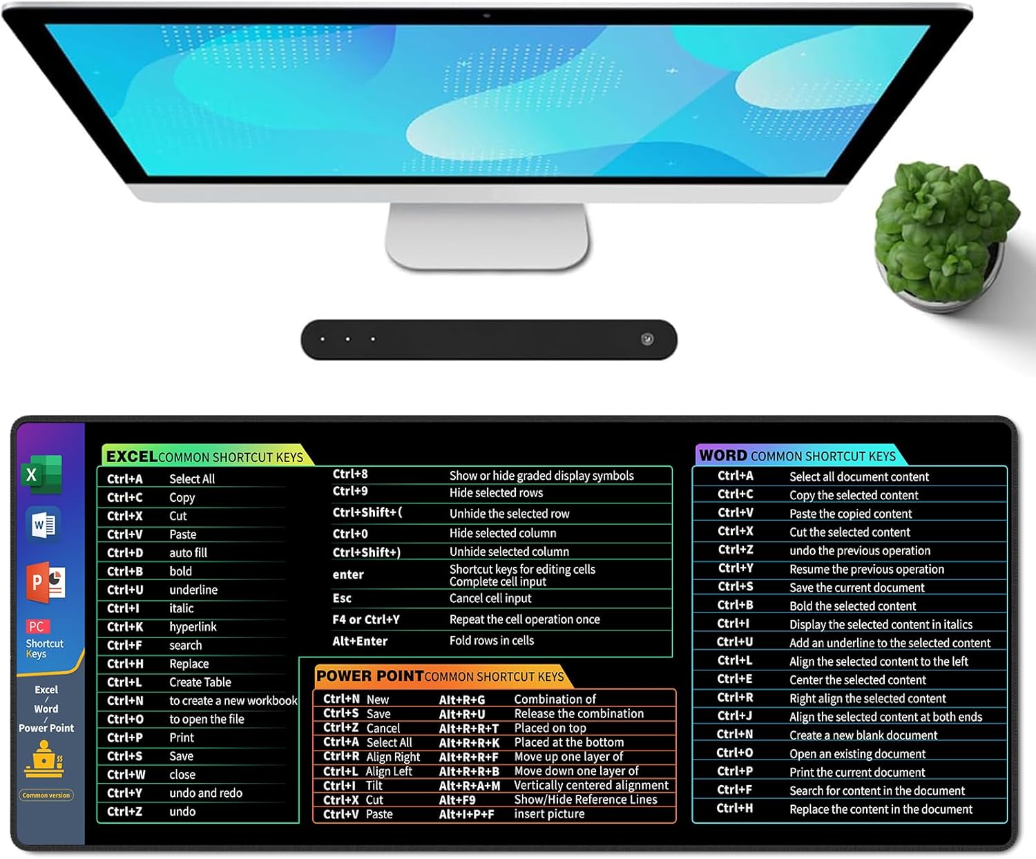 Galdas Gaming Mouse Pad XXL XL Large Long Extended Big Mousepad Non-Slip Rubber Keyboard Desk Pad with Stitched Edges for Laptop Home Office (31.5x11.8x0.08 Inch) … (Shortcut Keys1)