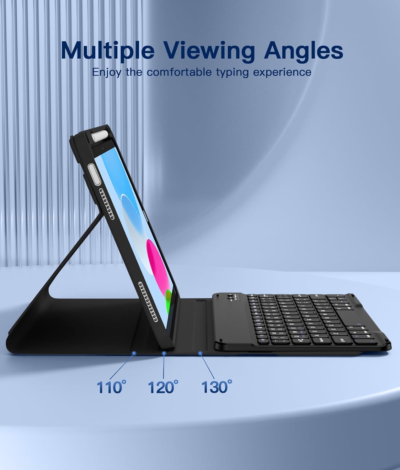- Multiple Viewing Angles: This for iPad case 10th generation with keyboard has 3 non-slip grooves to keep your tablet firmly in place. You can adjust the optimal viewing angle by moving your tablet around on the case, perfect for working, studying, reading, painting or watching videos