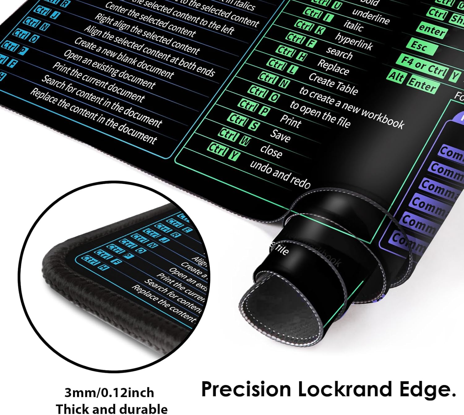 Galdas Gaming Mouse Pad XXL XL Large Long Extended Big Mousepad Non-Slip Rubber Keyboard Desk Pad with Stitched Edges for Laptop Home Office (31.5x11.8x0.08 Inch) … (Shortcut Keys Mac)