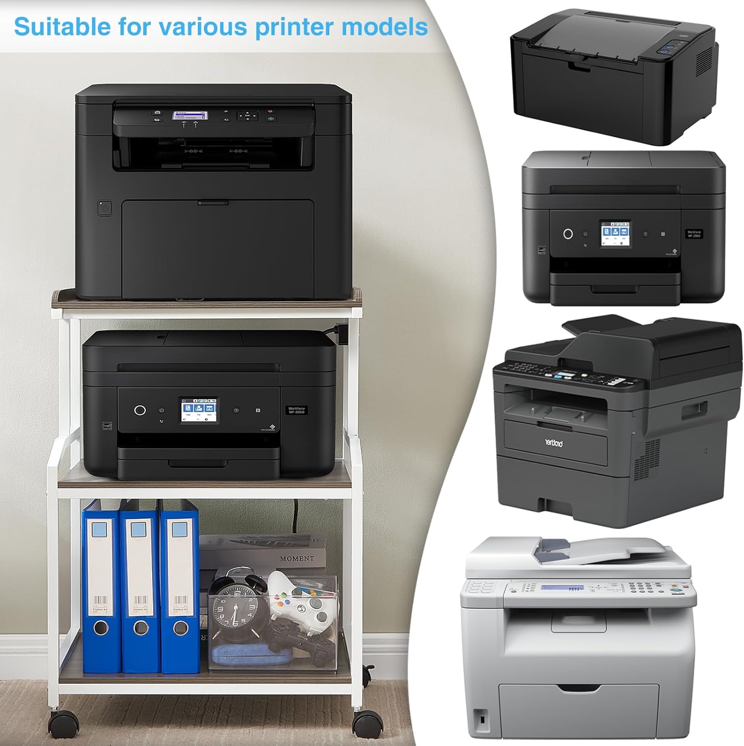 - Multi-Functional Storage Rack:The Multipopose Rolling Printer Cart adopts industrial design style,is suitable for placement in various scenes. You can use it in offices, homes, bedrooms, study rooms, kitchens, etc.The 3-tier printer cart with wheels can also be used as a file cabinet, kitchen cart, coffee table, sofa end table, plant stand rack, living room storage rack, nightstand.