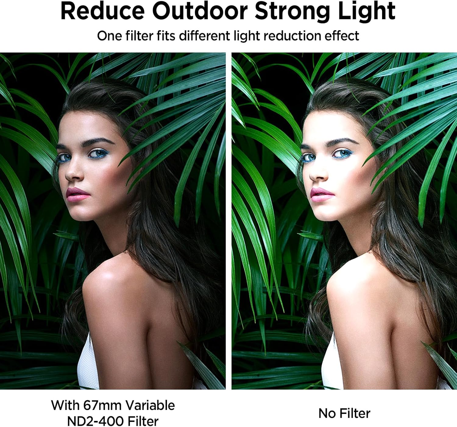 - 【Adjustable 67mm ND2-ND400 Filter】The variable neutral density filter reduces light from ND2 to ND400 to avoid overexposure in bright environments and allows you to capture dynamic motion blur effects. (Note: The black "X" crossing appearing in photos is an optical phenomenon that occurs when using excessively dense ND filter under specific lighting conditions. When shooting, try to avoid rotating the filter to the most dense position to reduce the occurrence of cross-light effects.)