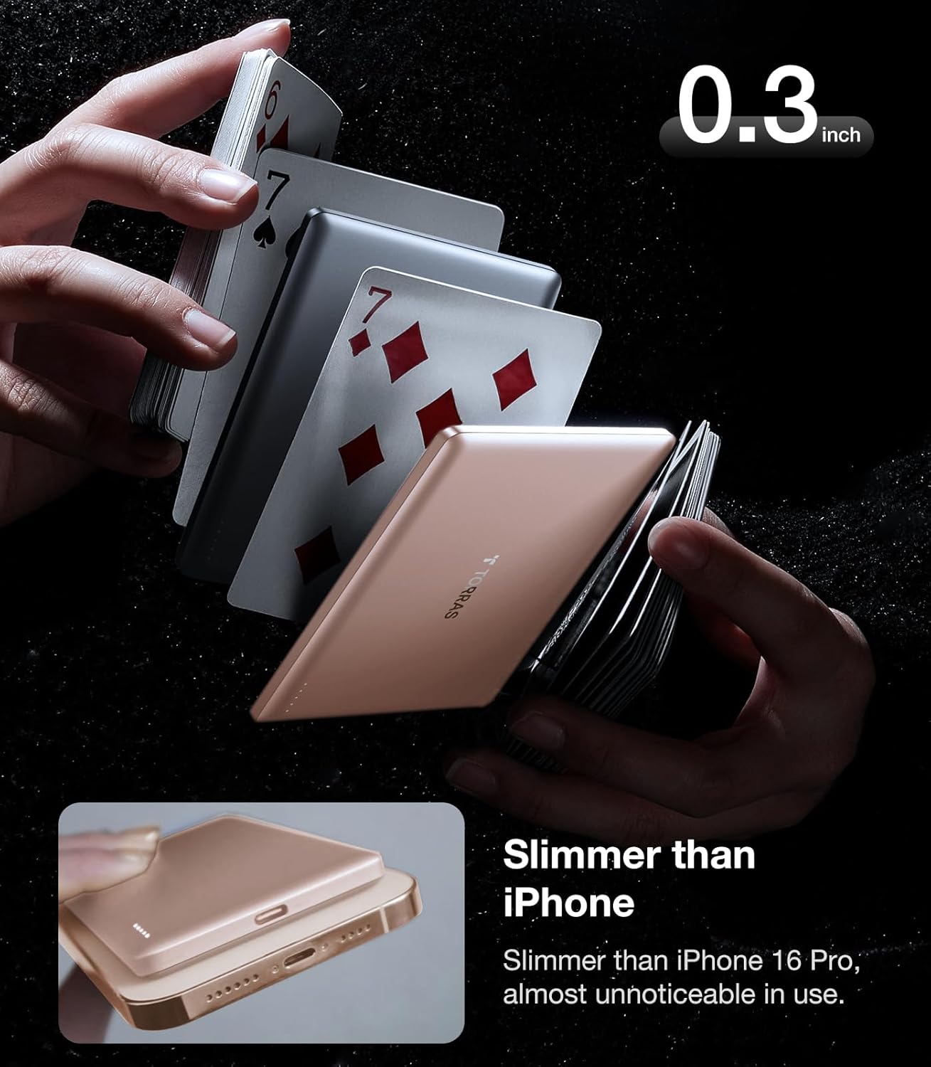 - 【Ultra-Compact & Lightweight】The MiniMag Power Bank is a portable charger that combines powerful performance with portability. Measuring just 0.3 inches thin, it's sooo thin and lightweight! It's almost invisible when attached to your phone, like carrying nothing at all! You can easily put it in your pocket or bag and carry it with you wherever you go! Despite its small size, it packs a punch with its high-capacity lithium-polymer battery that provides up to charge for your phone.
