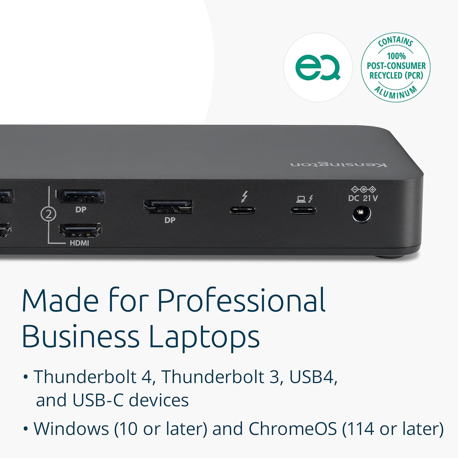 Kensington SD5910T DisplayLink Docking Station Thunderbolt 4, Quad 4K for MacBook Pro/Air M1/M2/M3/M4 with Pro and Max Chipsets, 100W PD, HDMI/DP/TB4, SD/Micro SD Card Slots (K35233NA)