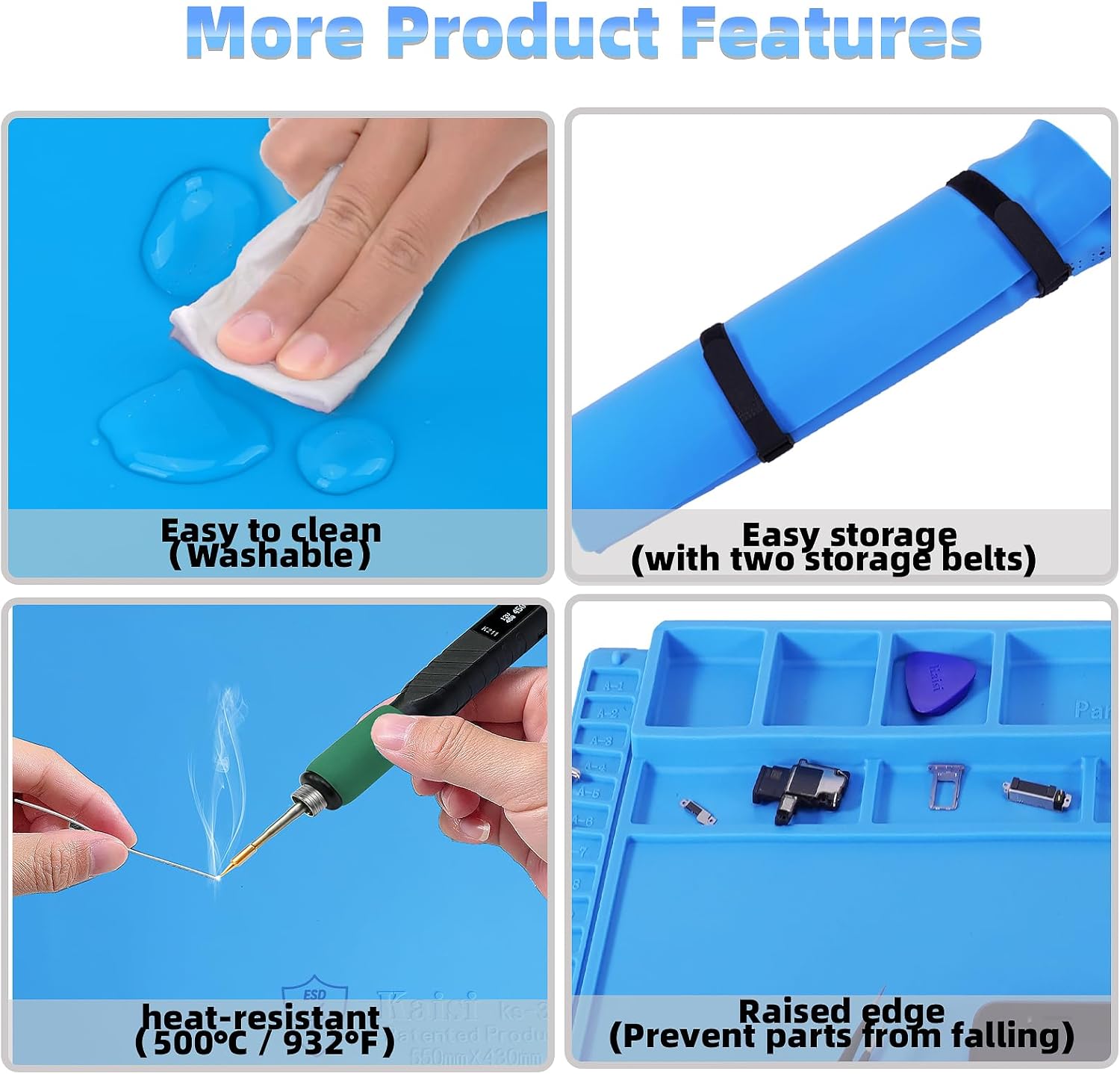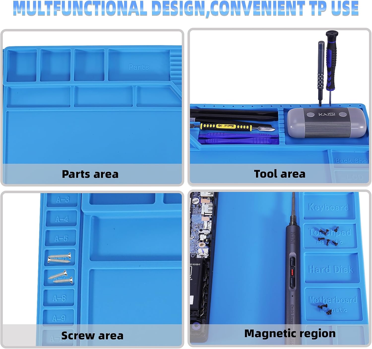 Kaisi Large Anti Static Mat with Grounding Accessories,Heat Resistant Silicone Soldering Mat,Magnetic Work ESD Pad for pc building, Electronics, Laptop, Cellphone Repair Soldering 21.6" x 16.9"