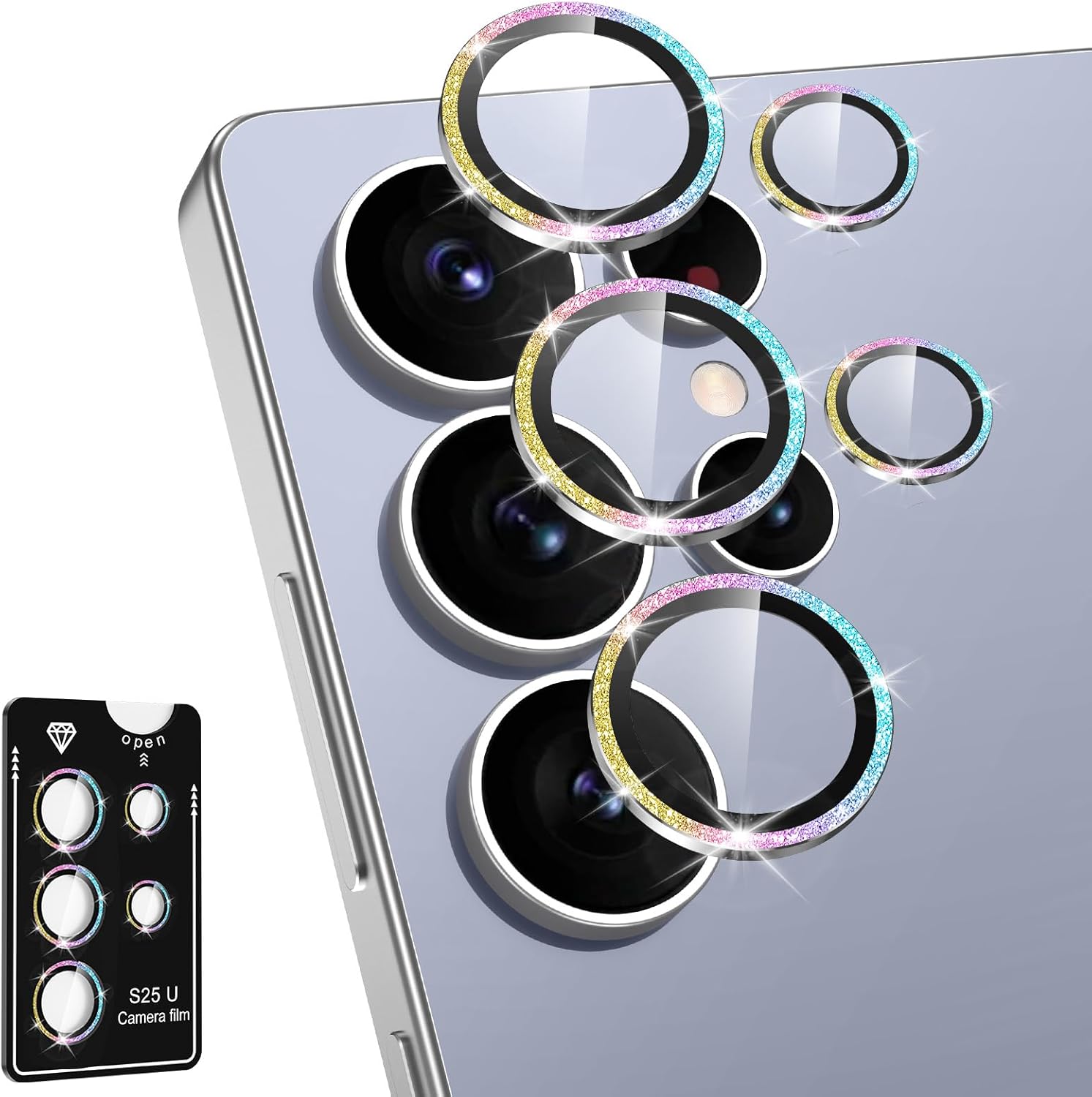 for Samsung Galaxy S25 Ultra Camera Lens Protector, Individual Metal Ring Tempered Glass Lens Cover, [Strong Adsorption] Scratch Resistant Ultra-Thin HD Clear Lens Cover,1 Set-Colorful Sparkly