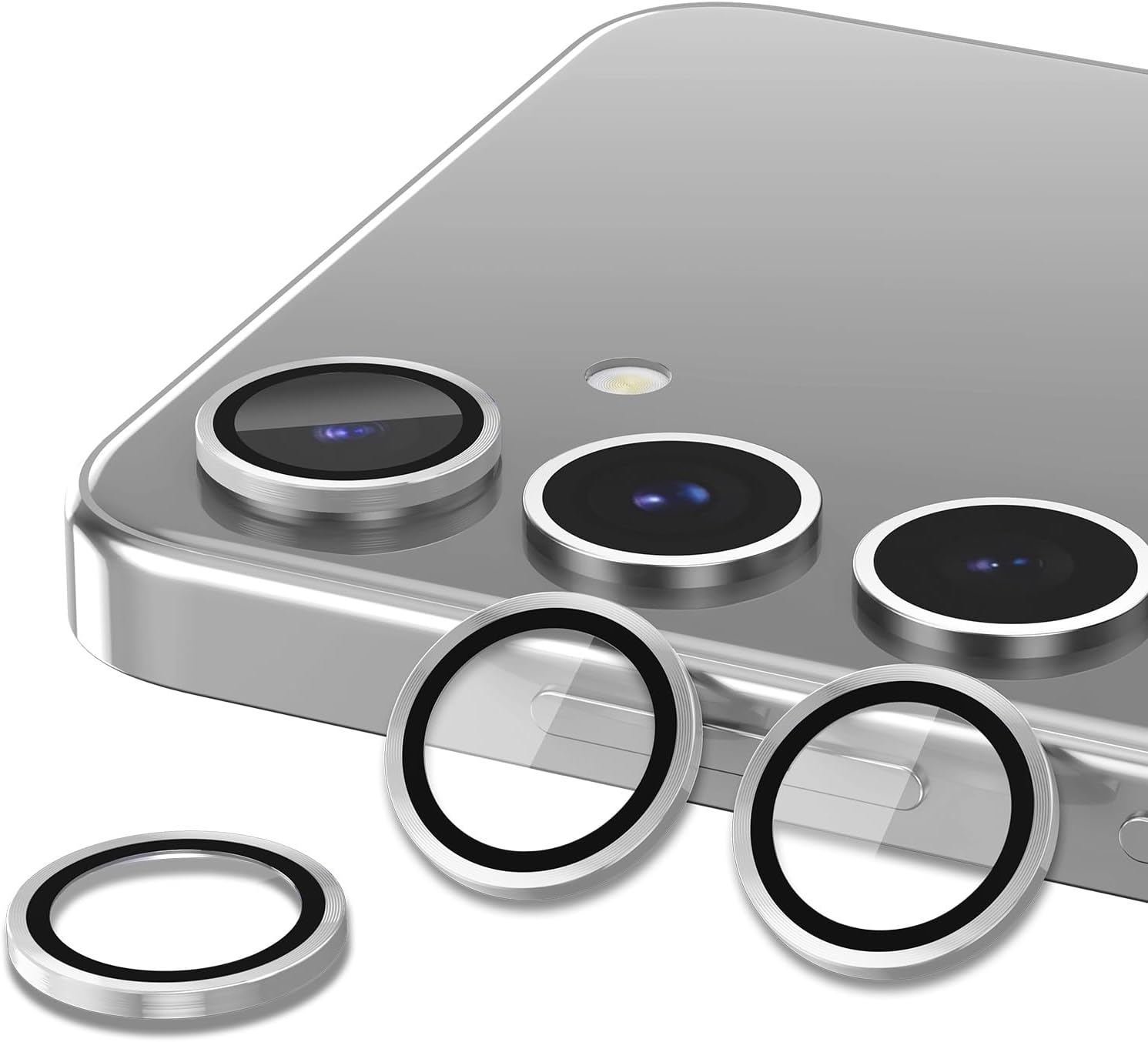 for Samsung Galaxy S25 Plus Camera Lens Protector, Individual Metal Ring Tempered Glass Lens Cover, [Strong Adsorption] Scratch Resistant Ultra-Thin HD Clear Lens Cover, 1 Set-Silvery