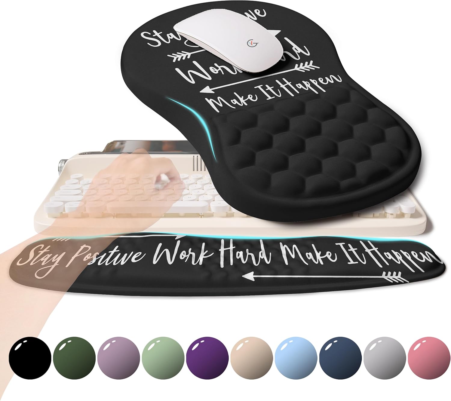 2-in-1 Ergonomic Set, Wave Rise Keyboard Wrist Rest and Massage Bulge Slope Mouse Pad Wrist Support, Cushion Memory Foam Integrated to Relieve Wrist Pain, Stay Positive