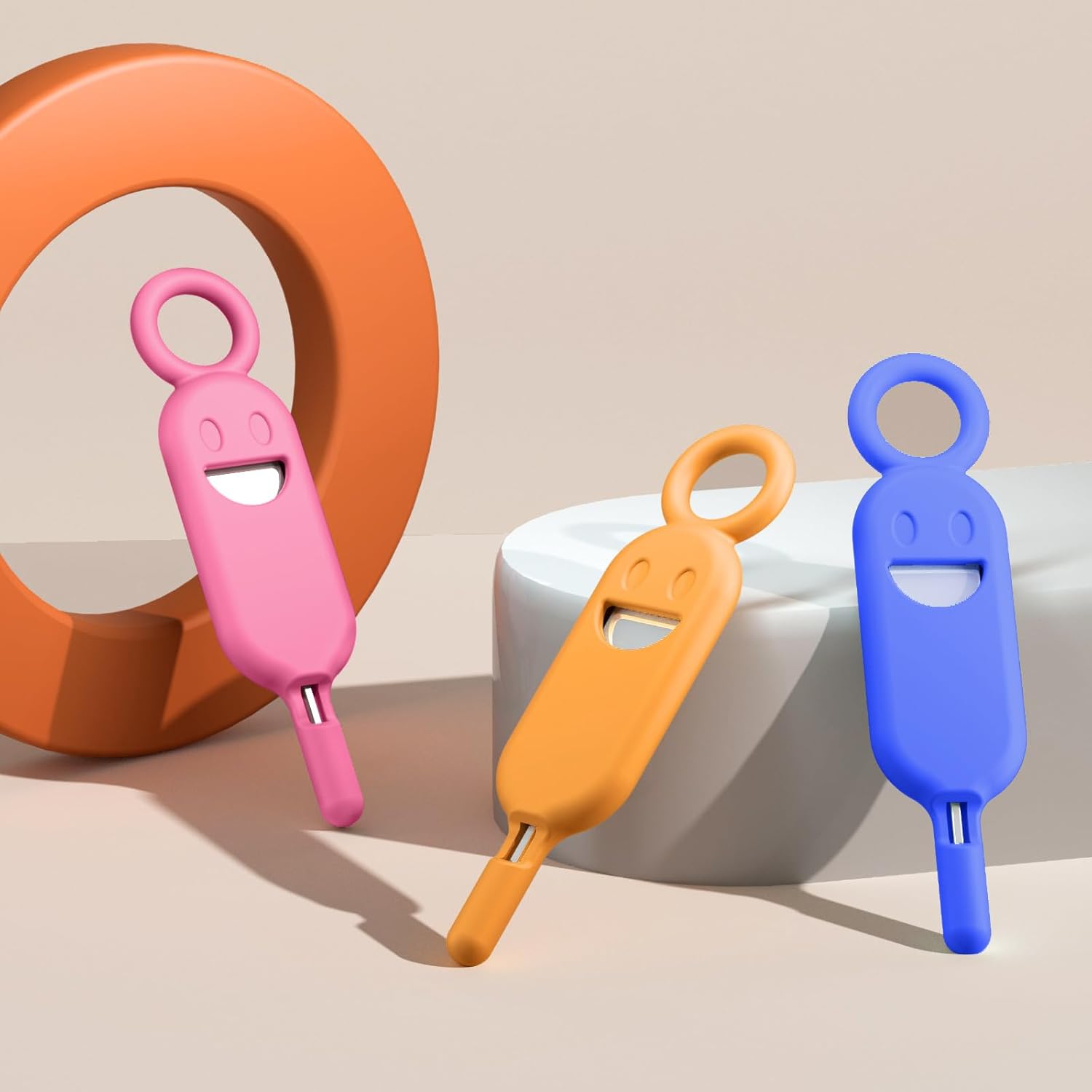 - 【Easy to Spot & Carry】Never lose your SIM ejector tool again! The vibrant silicone case makes the sim pin instantly visible, even in a cluttered bag or dim light. Clip it to your keys or tuck it into your bag—always ready for those unexpected SIM swaps!