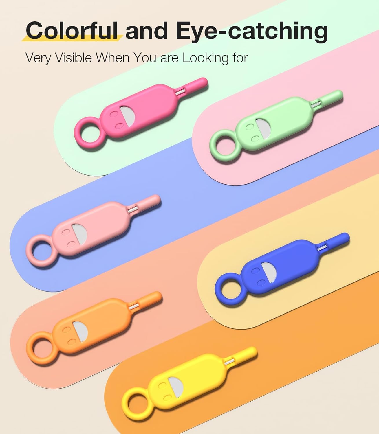 - 【Easy to Spot & Carry】Never lose your SIM ejector tool again! The vibrant silicone case makes the sim pin instantly visible, even in a cluttered bag or dim light. Clip it to your keys or tuck it into your bag—always ready for those unexpected SIM swaps!