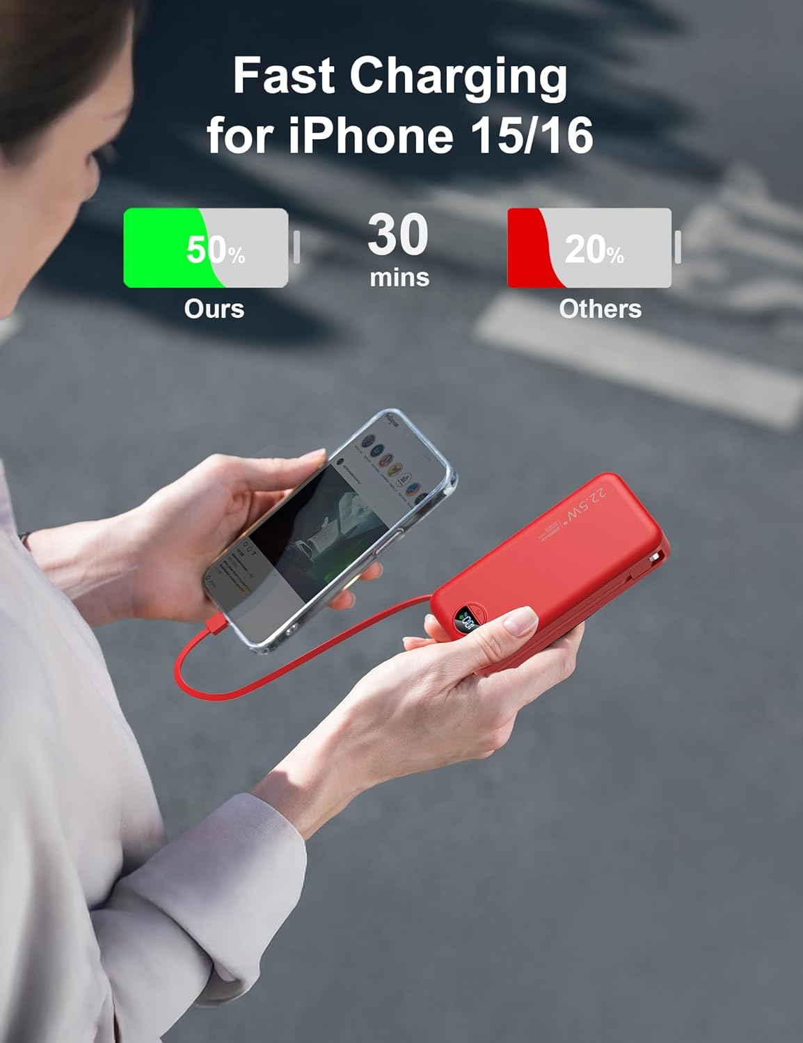 - ăQuick Speed Charging Power BankăThe Type C port of the portable power bank supports up to 20W fast charging output, which can quickly charge your iPhone 15 /16 device and save charging time for you.It can charge up to 5 devices simultaneously.