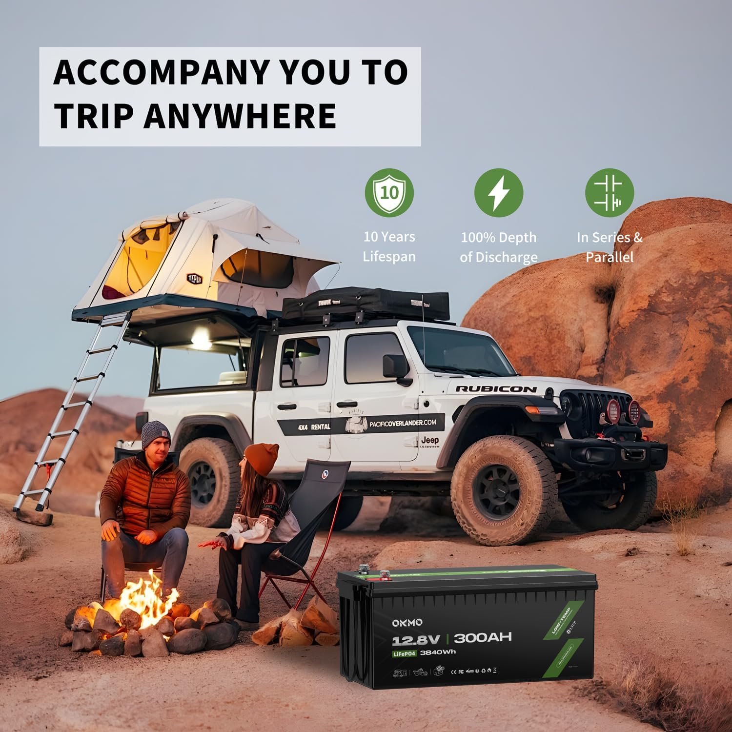 - Note: The OKMO 300Ah LiFePO4 battery is perfect for RV, Boat, Trolling Motor, Fish Finders, Ice Fishing, Camping, Solar System, and Home Alarm Systems
