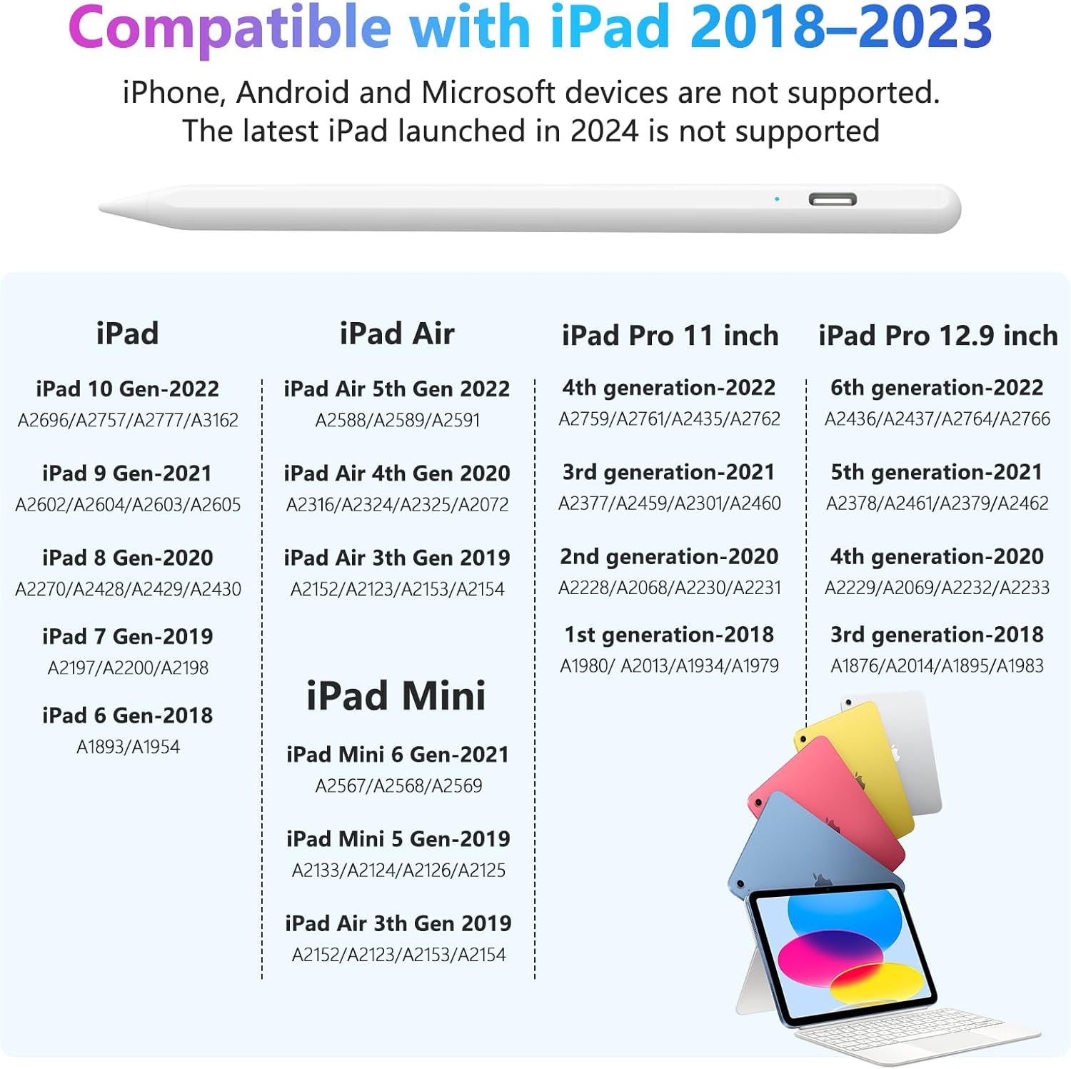 COO Stylus Pen for iPad, Button Fast Charging Pencil with Digit Indicator Light capacitive Pen (White)