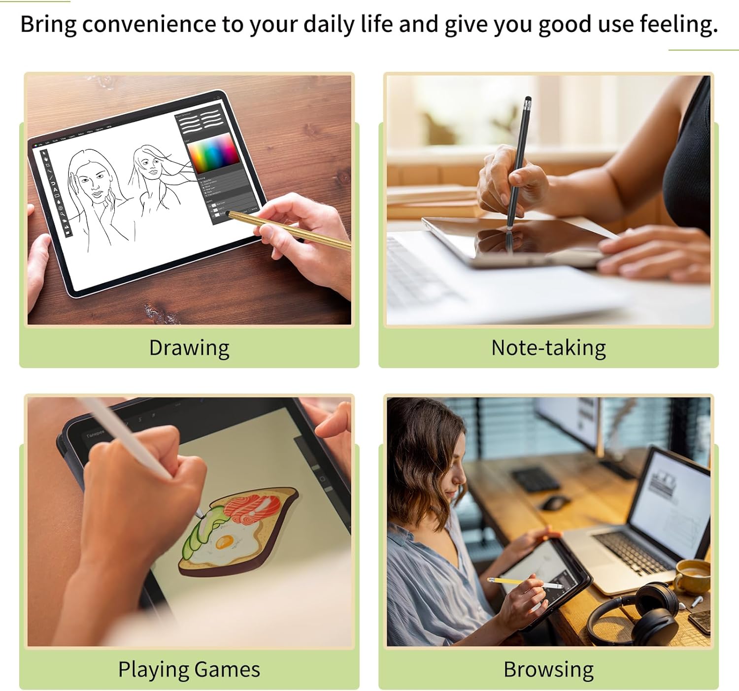 - The replaceable stylus tips are suitable for most of the capacitive pens; You can choose the appropriate size for installation, giving you good use feeling.