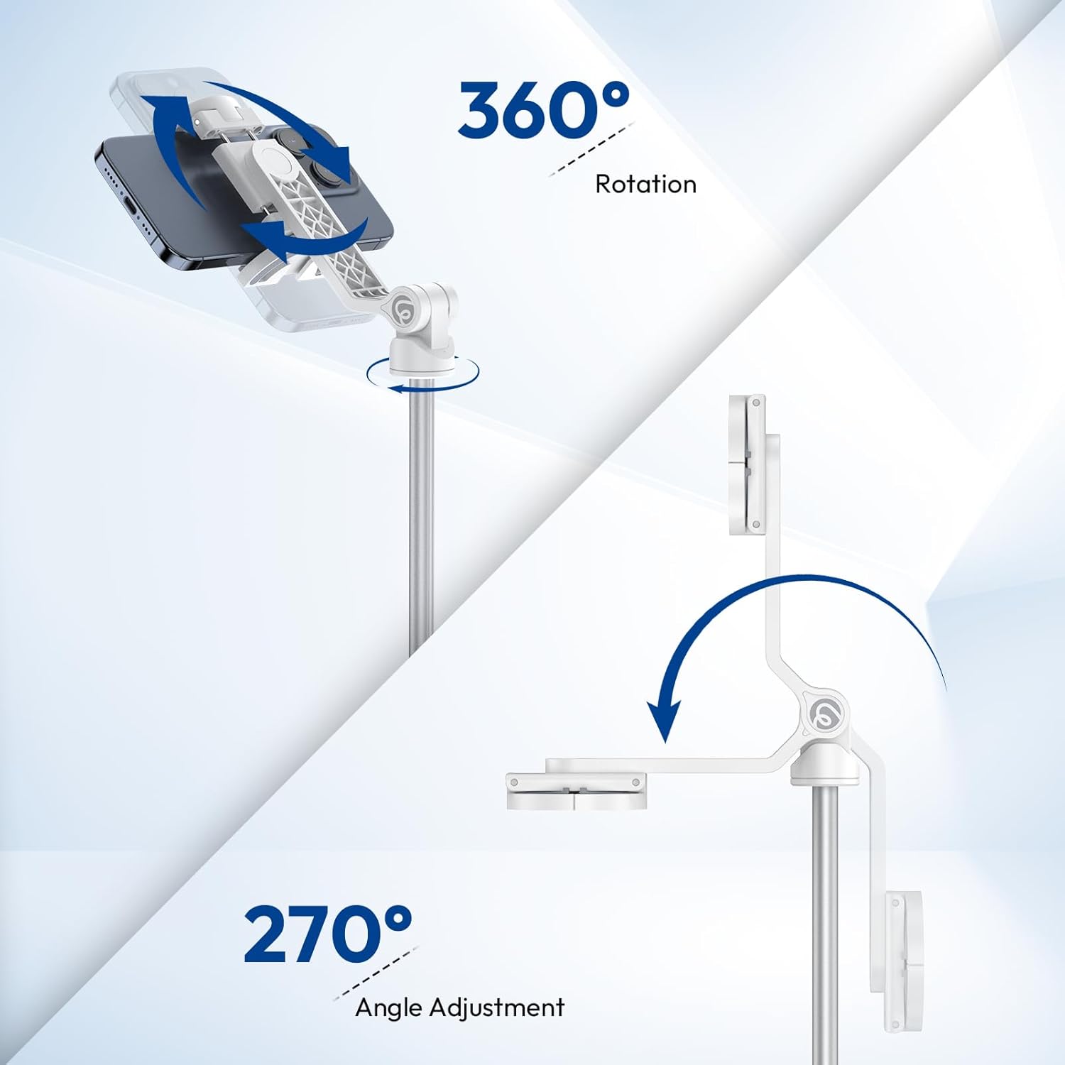 - ăInnovative Hook for Overhead Shotsă Hidden hooks on the phone stand tripod legs allow versatile overhead shooting. Use it in desktop mode (for surfaces thinner than 0.24 inches) or inverted mode (for surfaces under 0.43 inches). The space-saving design supports multi-angle shooting and holds up to 1.1 pounds.