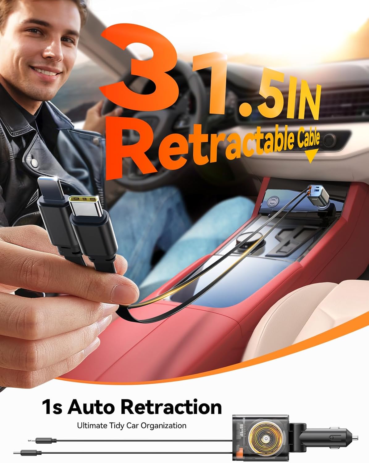 - Included Components : ► Dual Retractable Charging Cords [31.5 Inches]; ► 2025 Upgrade Ultra-Compact 84W Retractable Car Charger; ► User Manual ► Dual Retractable Charging Cords [31.5 Inches]; ► 2025 Upgrade Ultra-Compact 84W Retractable Car Charger; ► User Manual