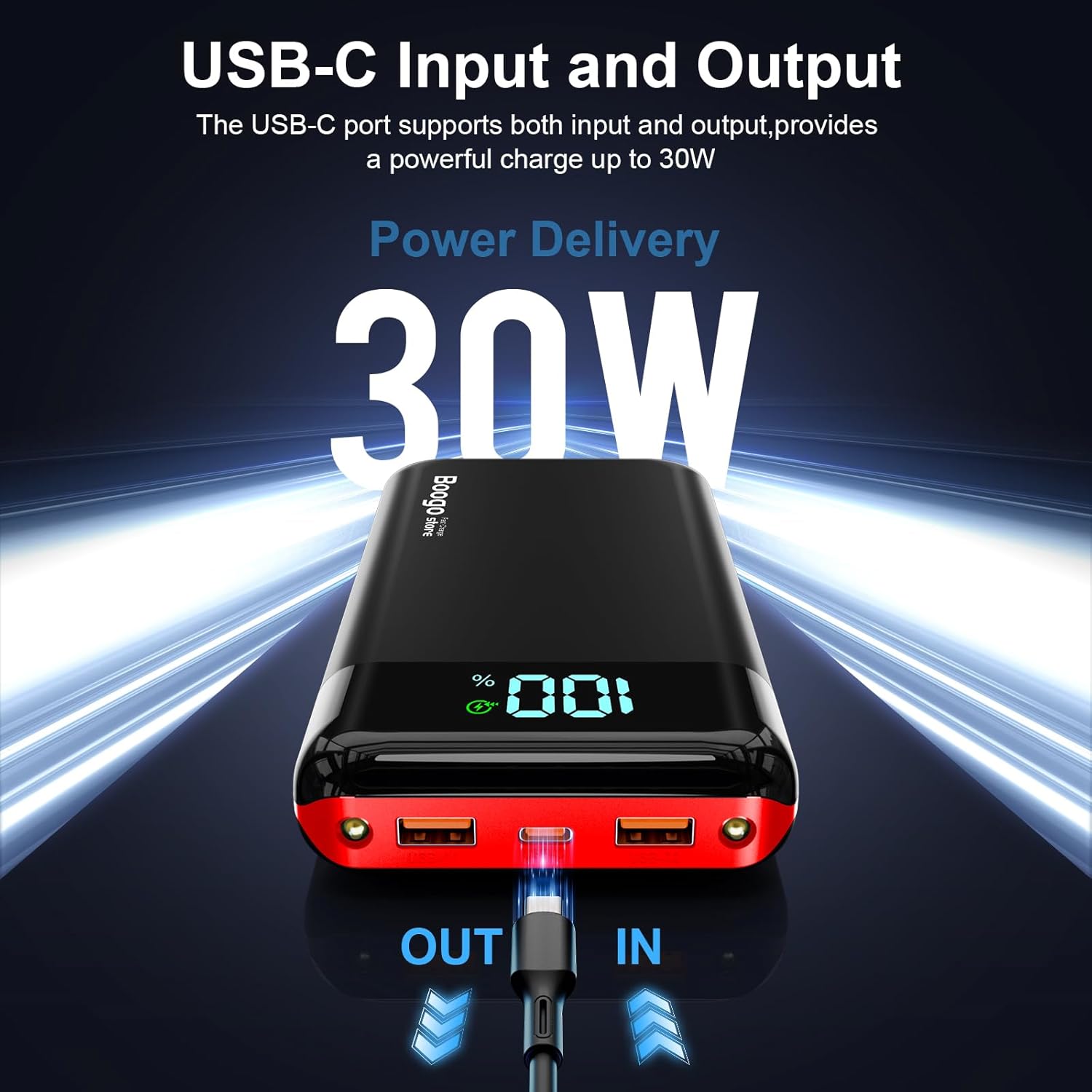 - [PD 30W Fast Charging] Portable charger adopts the latest Super Charger Protocol and Fast Charger Protocol. Support QC4.0+PD30W super fast charge, it only takes 30 minutes to charge your iPhone 13 from 30% to 80%, which is 3 times faster than most ordinary old power bank 10W portable chargers on the market.