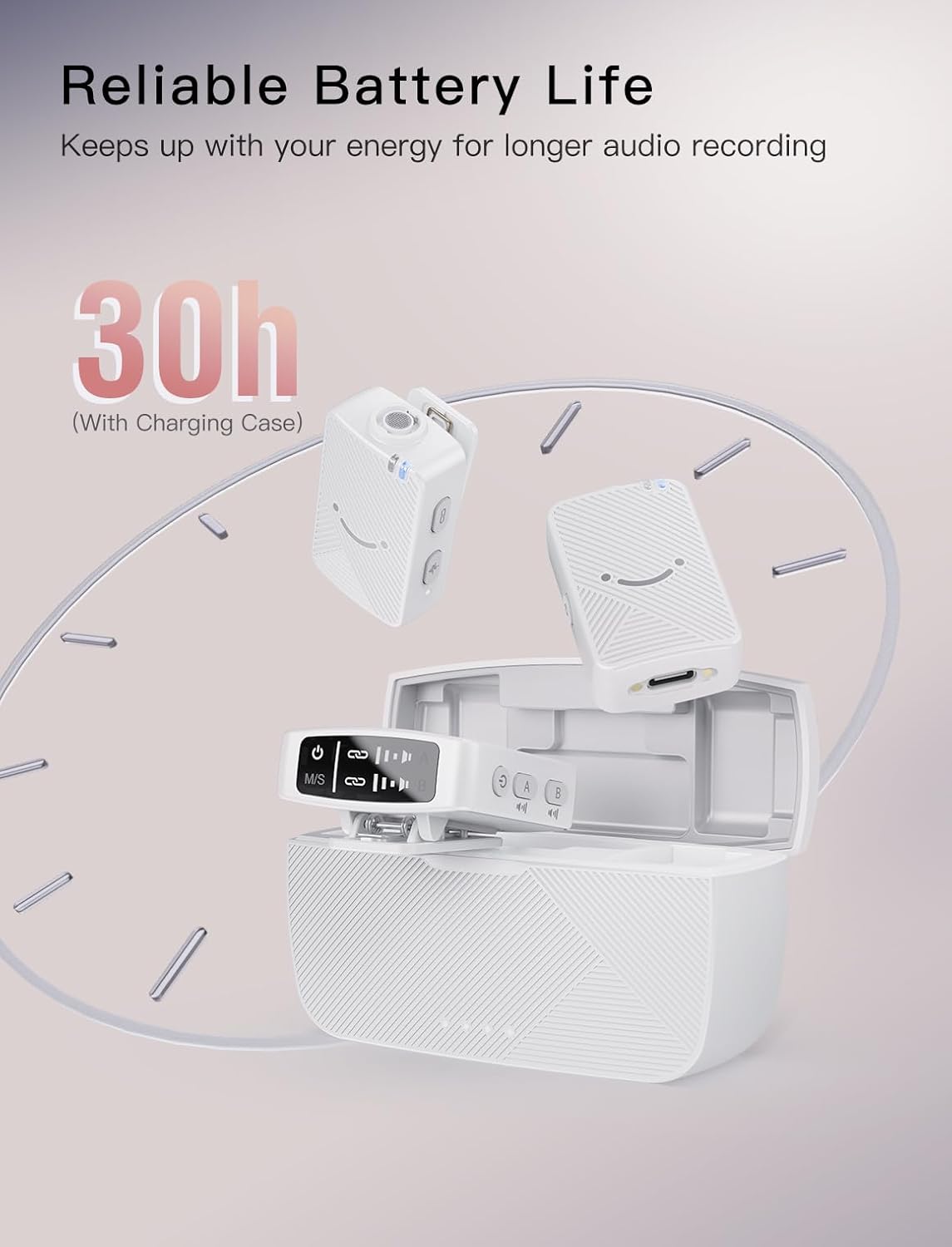 - [Versatile Compatibility, One-Stop Solution] Whether you're shooting on a DSLR, vlogging on a Type-C smartphone, or online course recording on a laptop, the wireless lapel mic for podcast is convenient to connect to Android phones, tablets, iPhones, iPads, and laptops. Clip microphone wireless is ideal choice for creators who switch between platforms or need flexibility in different recording environments.