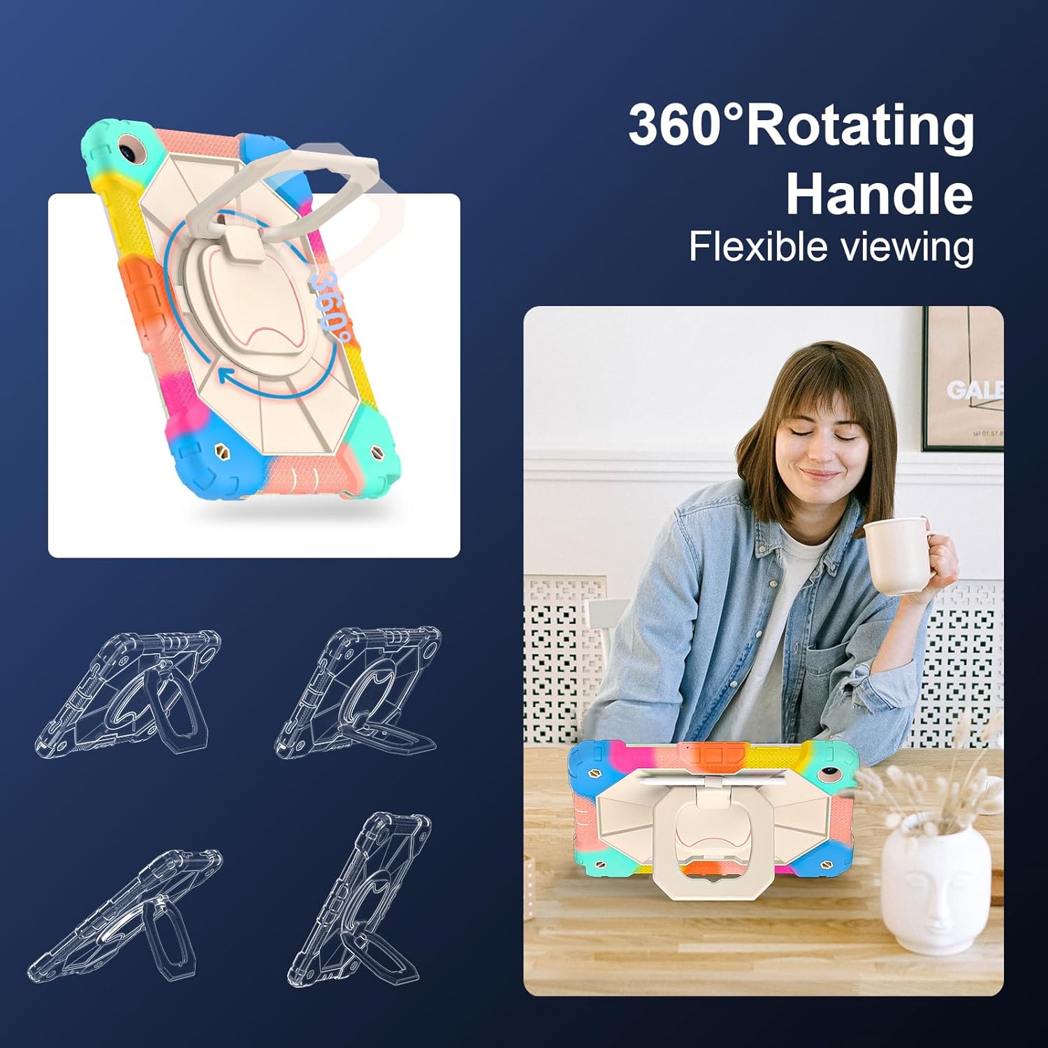 for Galaxy Tab A9 Plus Case 11 Inch, Rugged Case for Samsung Galaxy A9+ Tablet with Screen Protector 360 Rotating Stand Shoulder Strap Pen Holder, 2023 Model(SM-X210/X216/218), Rainbow