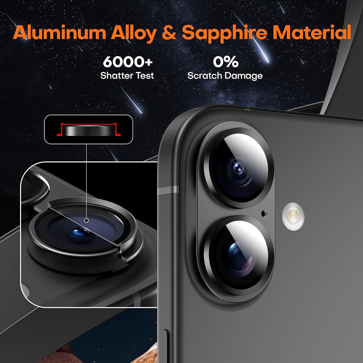 - [Military-Grade Protection] Wumigoo for iPhone 16 / 16 Plus camera covers are crafted from aerospace aluminum alloy and sapphire material. Upgraded materials and robust structure ensure the camera lens is resistant to scratches, impacts, and dust. We integrate frosted metal plates with tempered glass to enhance its effectiveness in dissipating impact forces and providing full protection. Maximally shields the phone from scratches, scuffs, and collisions.