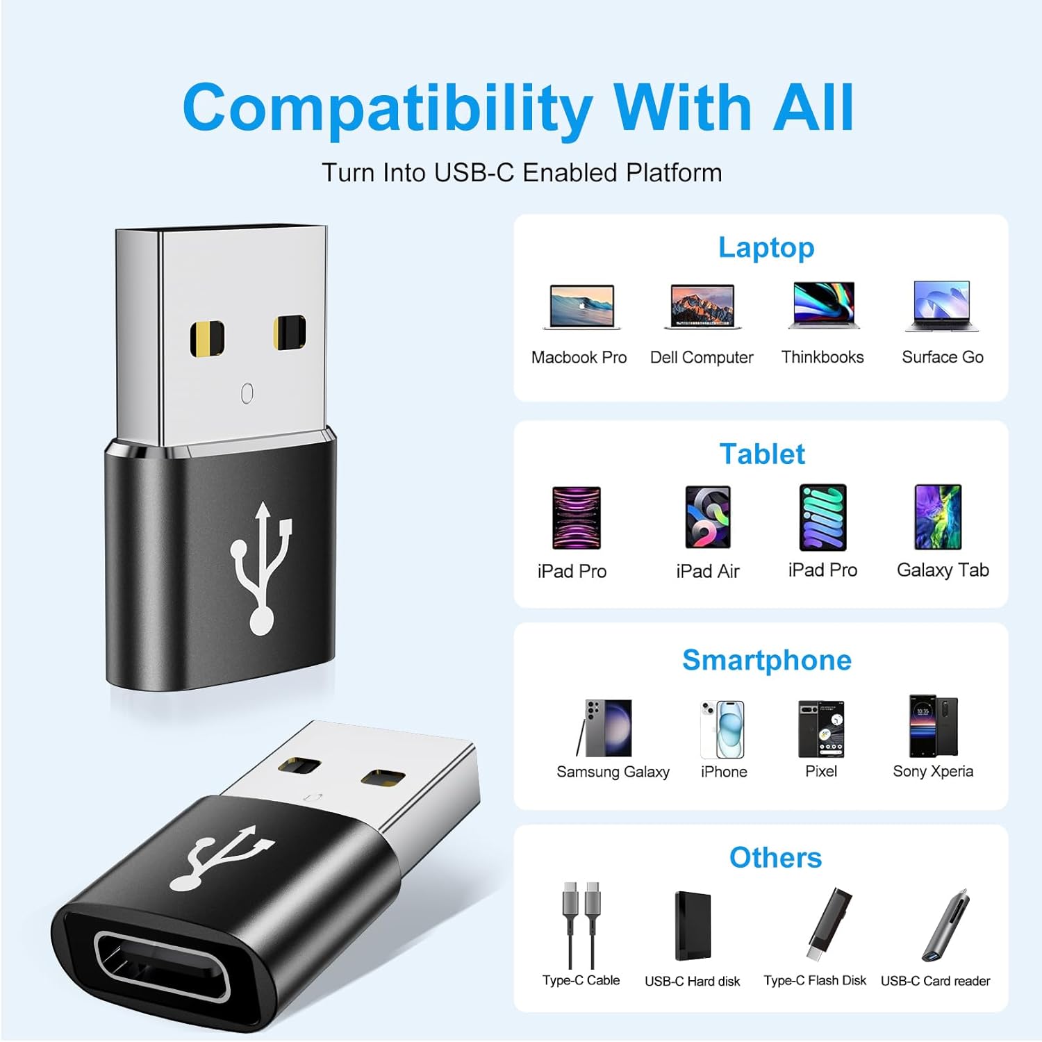 - 【USB to USBC Compatible】: With this USB to USBC-C adapter plugged into a standard USB port, your legacy devices (wall charger, power bank, computer, laptop,PC,car charger,car play,hub etc) can turn into a USB-C enabled platform. Specially compatible with usb c charger cable for iPhone 14/14 Plus/14 Pro/14 Pro Max/13/13 Mini/13 Pro/13 Pro Max/12 Pro/12 Mini,Macbook,iPad Pro/Air,Google Pixel 5/4 etc.This USB A to C adapter do not support USB 3.0 and do not support video signal transmission.