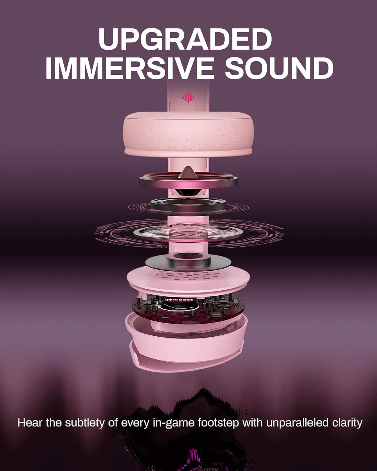 - Comfortable and Breathable: The gaming headset weighs 20% less than standard models and includes oversized memory foam ear cushions. Wireless gaming headset stays cool and light even after hours, whether you’re deep in a game, on a call, or binge-watching your favorite series.