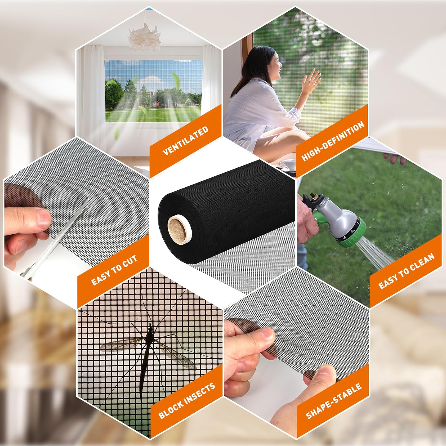 - ROLL - PACKAGING: Our window screen replacement comes in roll packed to ensure quality, sized at 37.4in × 16.4ft. Made from high - quality 48x48 mesh polyester, it combines durability with flexibility for easy handling and cutting during installation.