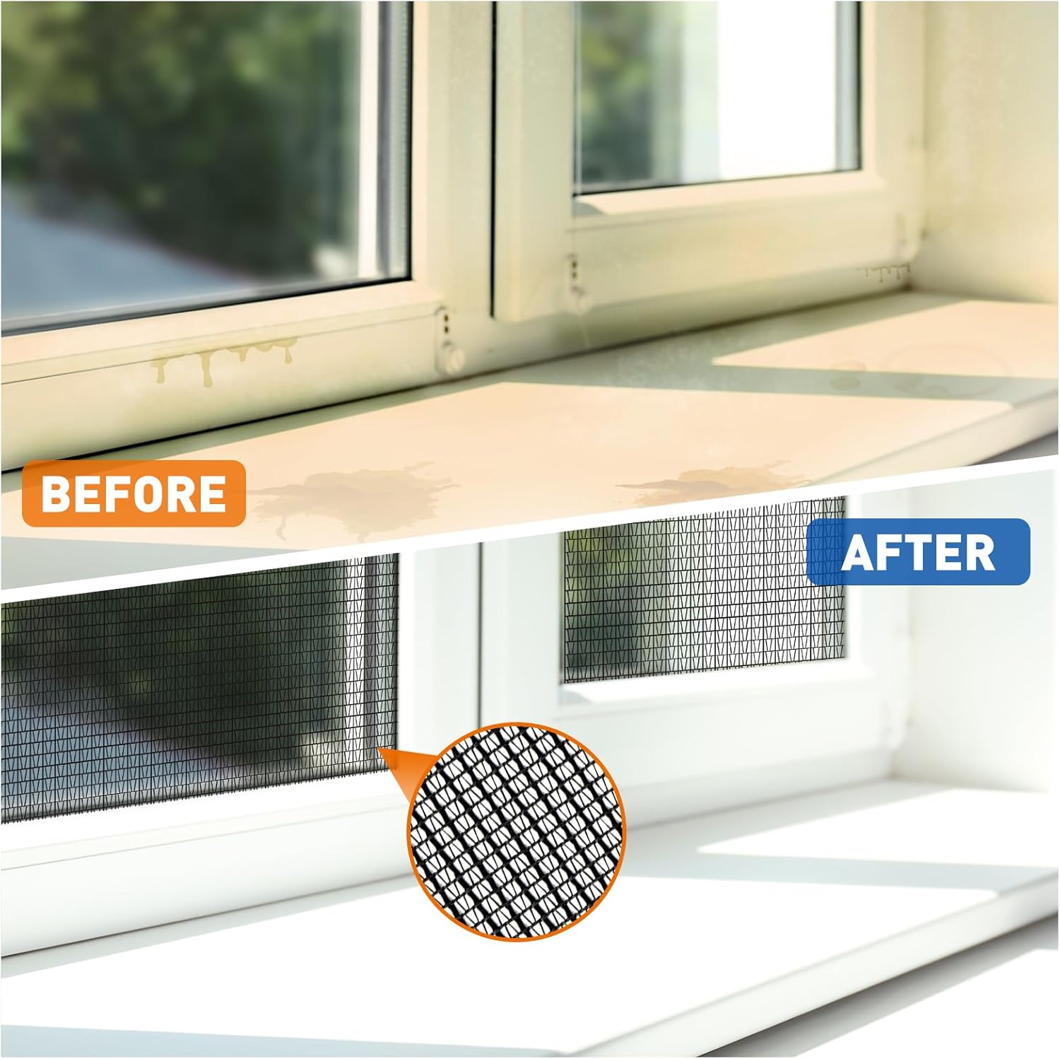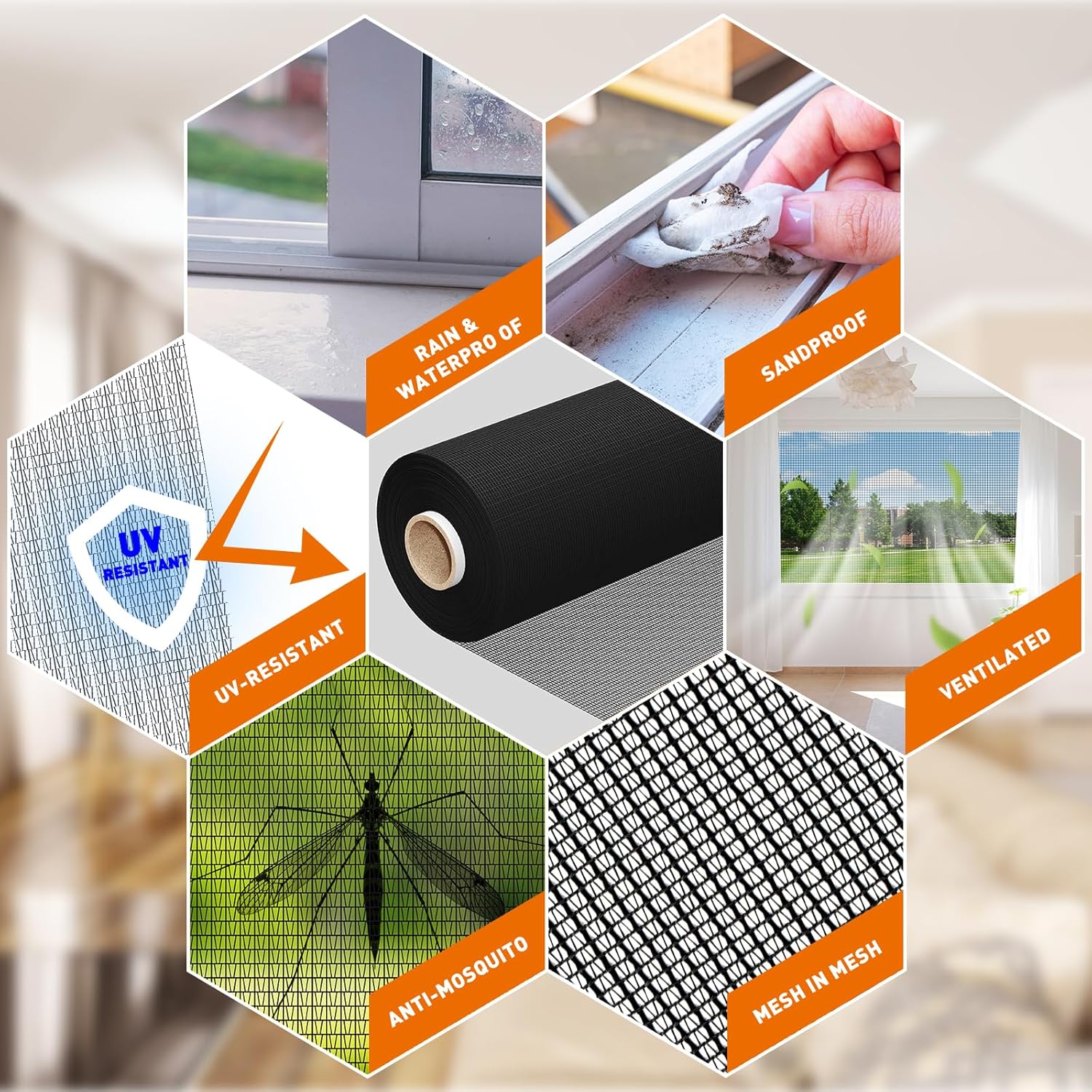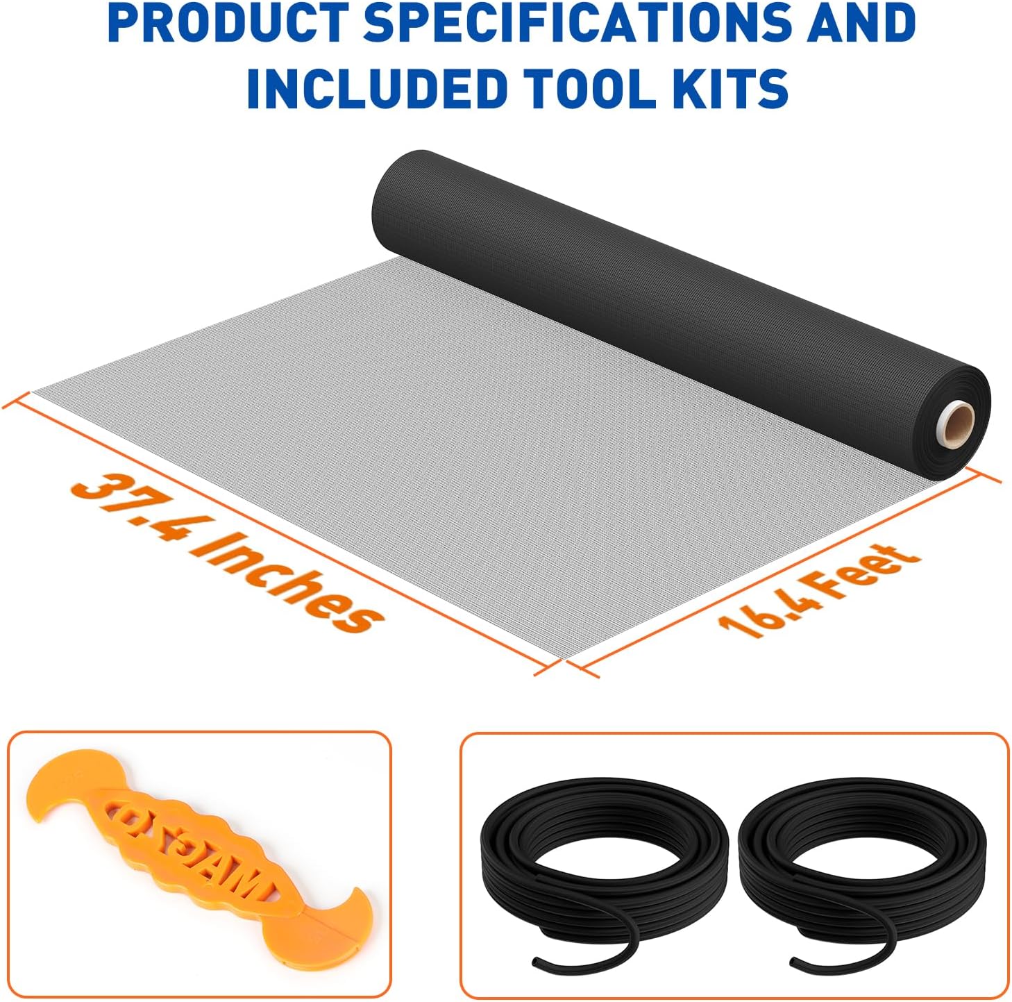 - ROLL - PACKAGING: Our window screen replacement comes in roll packed to ensure quality, sized at approx. 37.4x196.9 inches with 40 mesh. Made from high - quality polyester, it combines durability with flexibility for installation