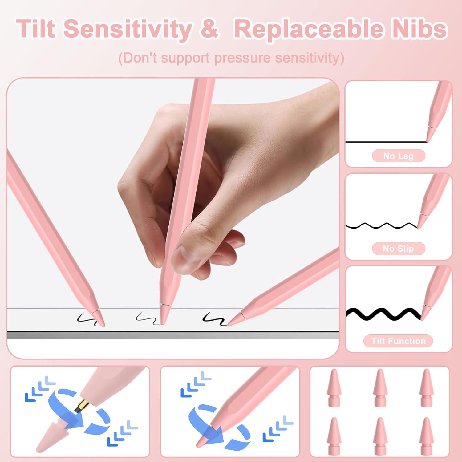Pencil 2nd Generation for iPad 2018-2024 with Magnetic Wireless Charging Compatible with Apple iPad Pro 13”(M4)/12.9”/11”,iPad Air 6(M2)/5/4/3,iPad mini 7(A17 Pro)/6/5,iPad10/9/8/7/6 Pink