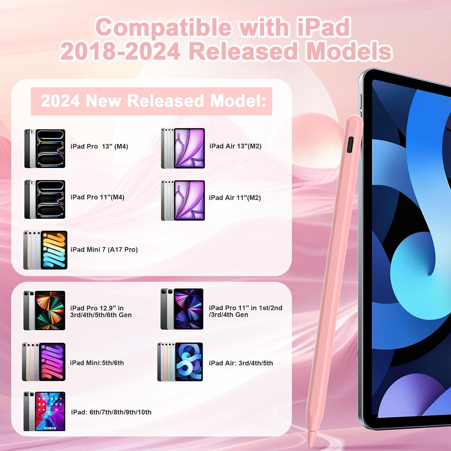 - USB-C Fast Charge Compatibility: Upgrade Stylus pencil Same as Apple Pencil 2nd Generation supports USB-C Fast Charge and Compatible With iPad 2018-2024 Model: iPad Pro 13”(M4)/12.9”/11”,iPad Air 6(M2)/5/4/3,iPad Mini 7(A17 Pro)/6/ 5,iPad10/9/8/7/6 and fully charging in 30 minutes and up to 8 hours of continuous use and Power display: Charging: green light breathes; Using: green light stays on; Less than 20% power: red light flashes