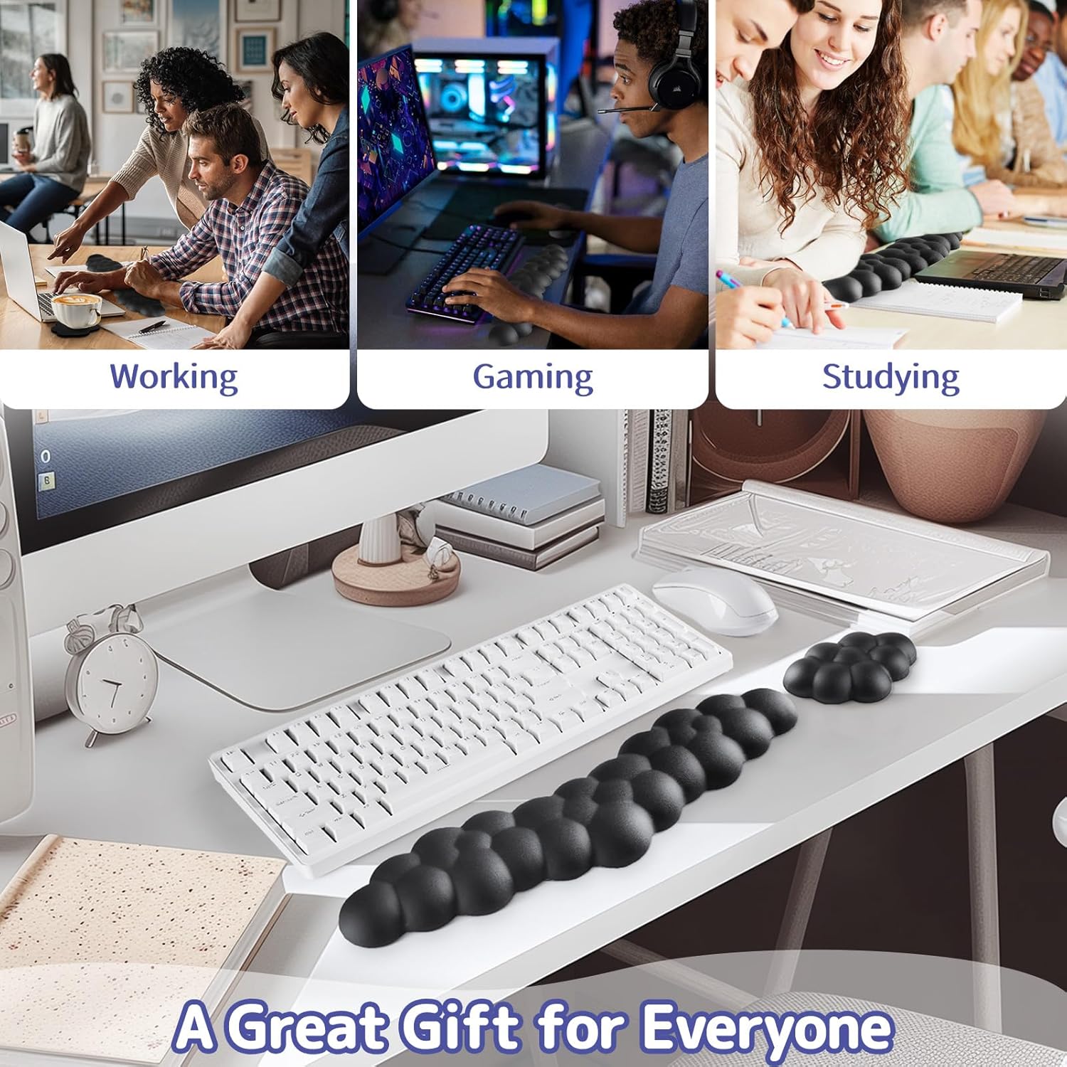 - 3-in-1 Cloud Desk Set:This 3-piece cute desk accessory set includes a keyboard wrist rest, a matching mouse wrist rest, and a cloud-shaped coaster. Designed for both function and aesthetics, it's a thoughtful office gift for family, friends and teachers, or coworkers who want to add comfort and style to their workspace