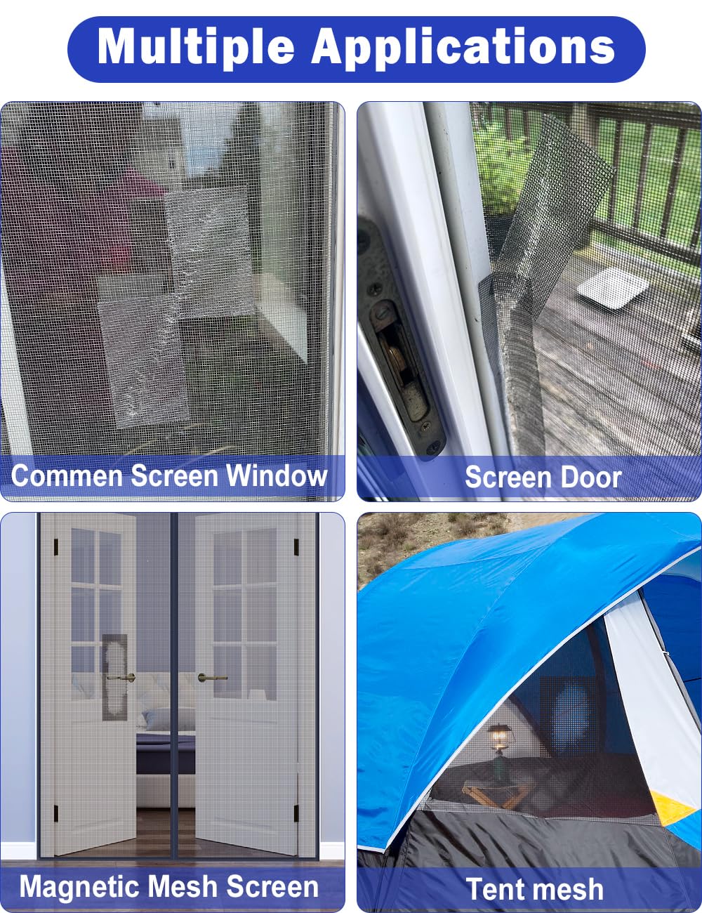 - Widely Application: The window screen tape can be used in various places such as window screens, retractable screen doors, tent mesh, and more. It is versatile for use in outdoor tents, RV window screens, camping tarps, and any other applicable areas.