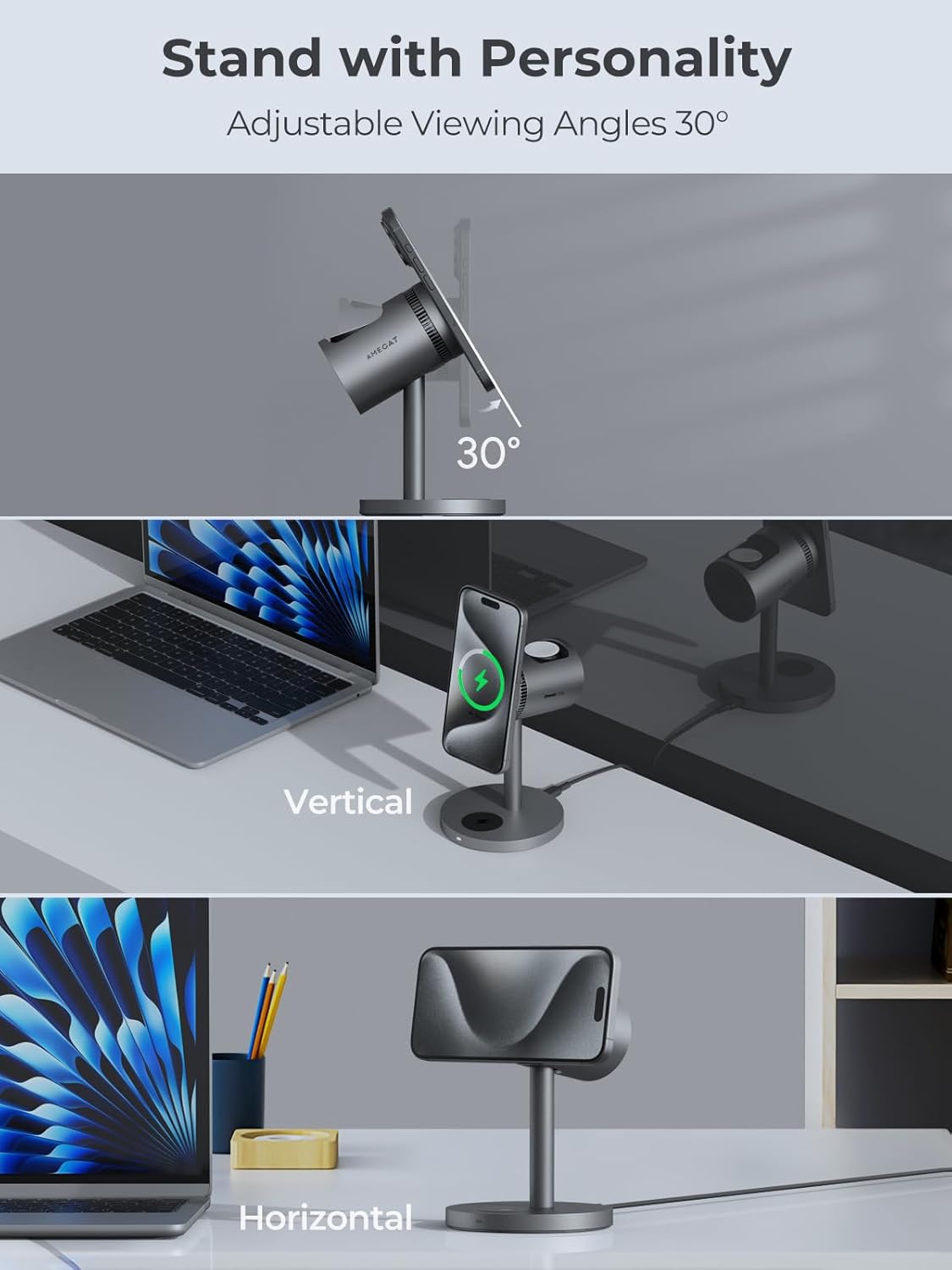 - Safety and Durability: AMEGAT magnetic charger stand has a number of functions such as foreign object detection, temperature control, short circuit, over-current and over-voltage protection to ensure safe charging. The included braided charging cable is sturdy and wear-resistant