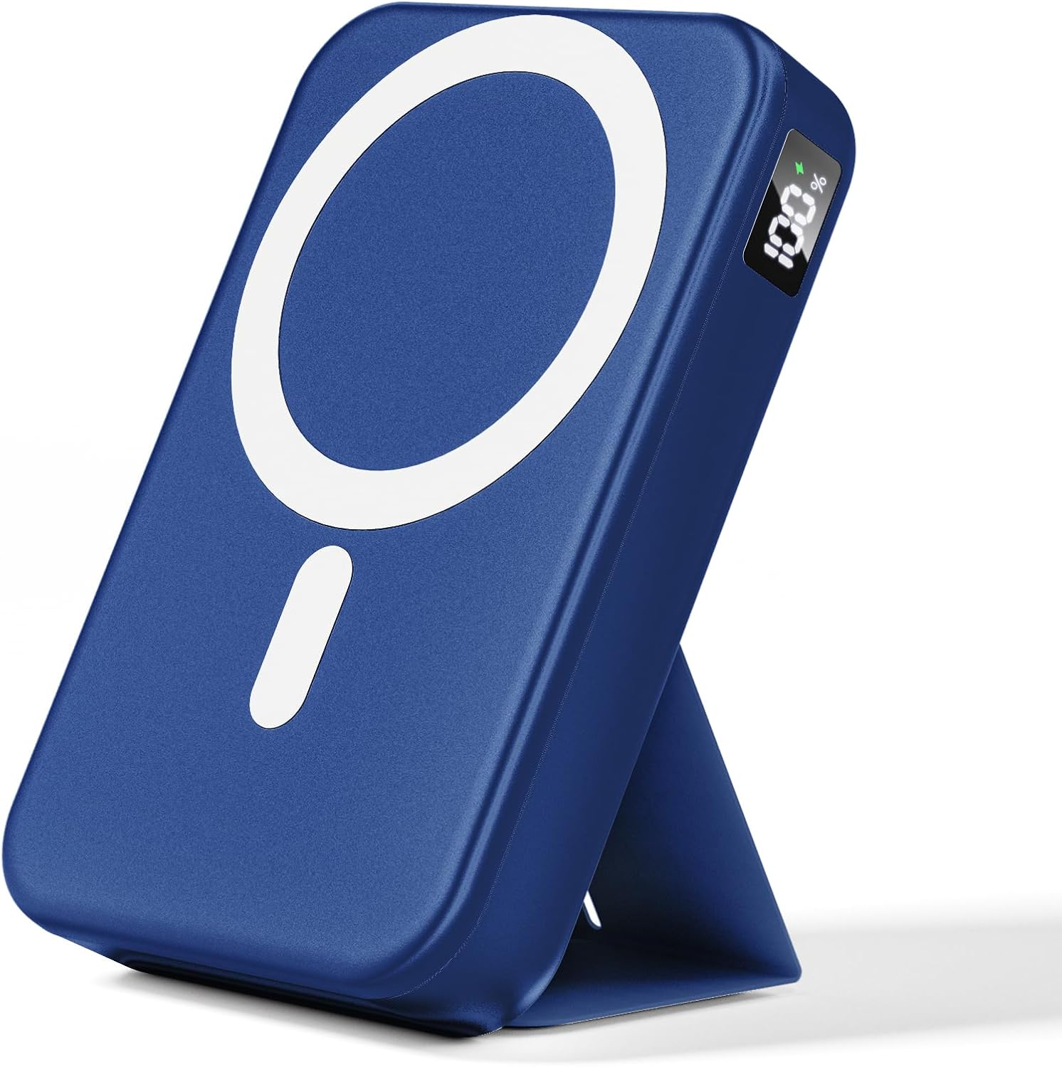 Magnetic Power Bank, 10000mAh Wireless Portable Charger with 20W USB-C Fast Charging, Foldable Stand & LED Display Battery Pack, Compatible with iPhone 16/15/14/13/12, Blue