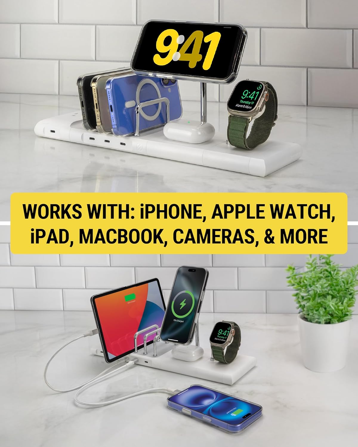 - Versatile Charging Station: The BaseLynx 2.0 modular system, featuring phone holders and chargers for Apple Watch, iPhone, iPad, AirPods and MacBook, keeps your devices organized and fully charged in one streamlined setup, powered by the included 6-foot AC power cable