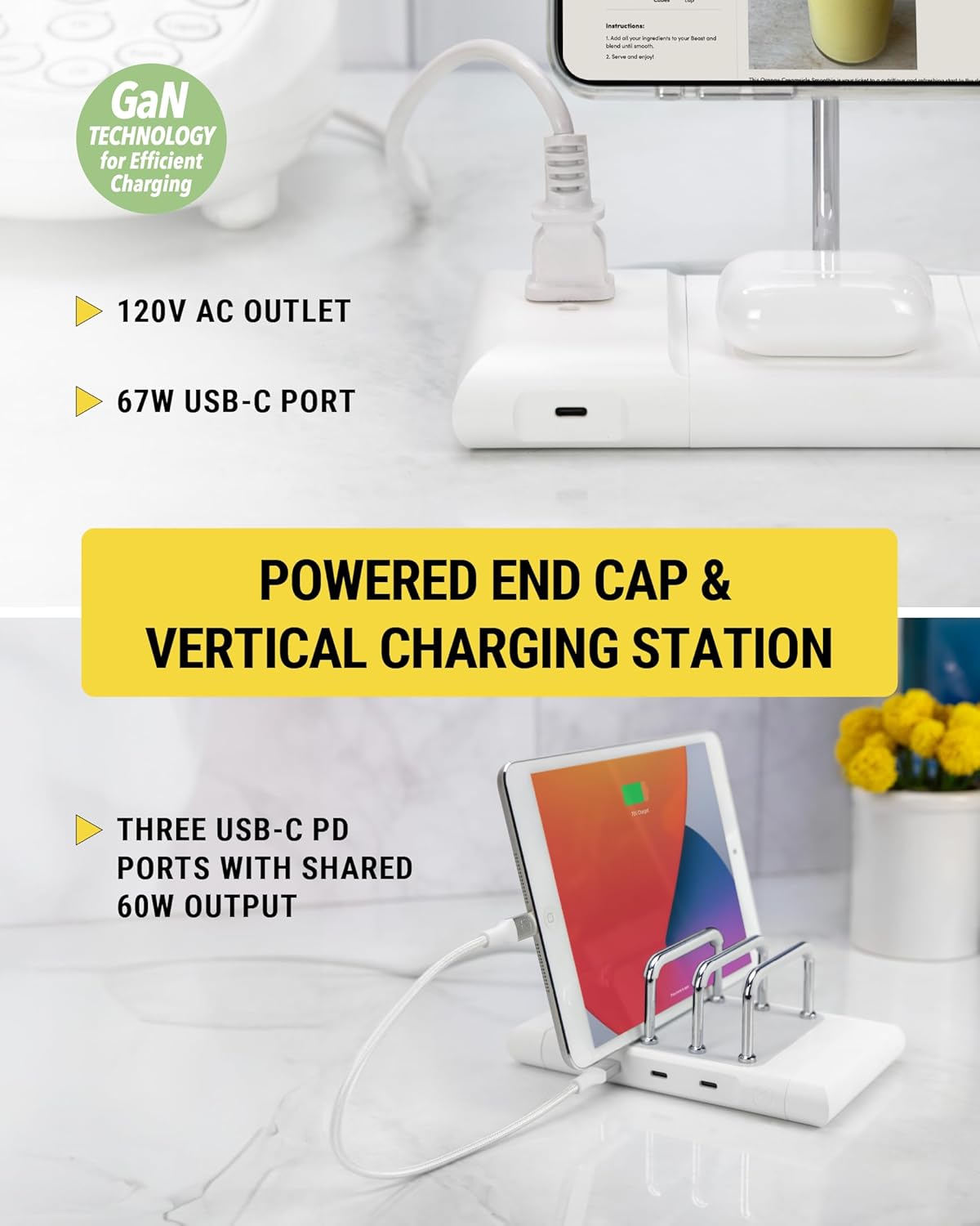- Multi-Device Charging Station: The BaseLynx 2.0 Vert, with three USB-C PD charger ports and 60W total output, uses power-sharing technology to optimally charge your Apple iPhone, iPad, Galaxy, and other Type-C Android devices simultaneously. It intelligently adjusts charging speeds to ensure each device is powered safely and efficiently