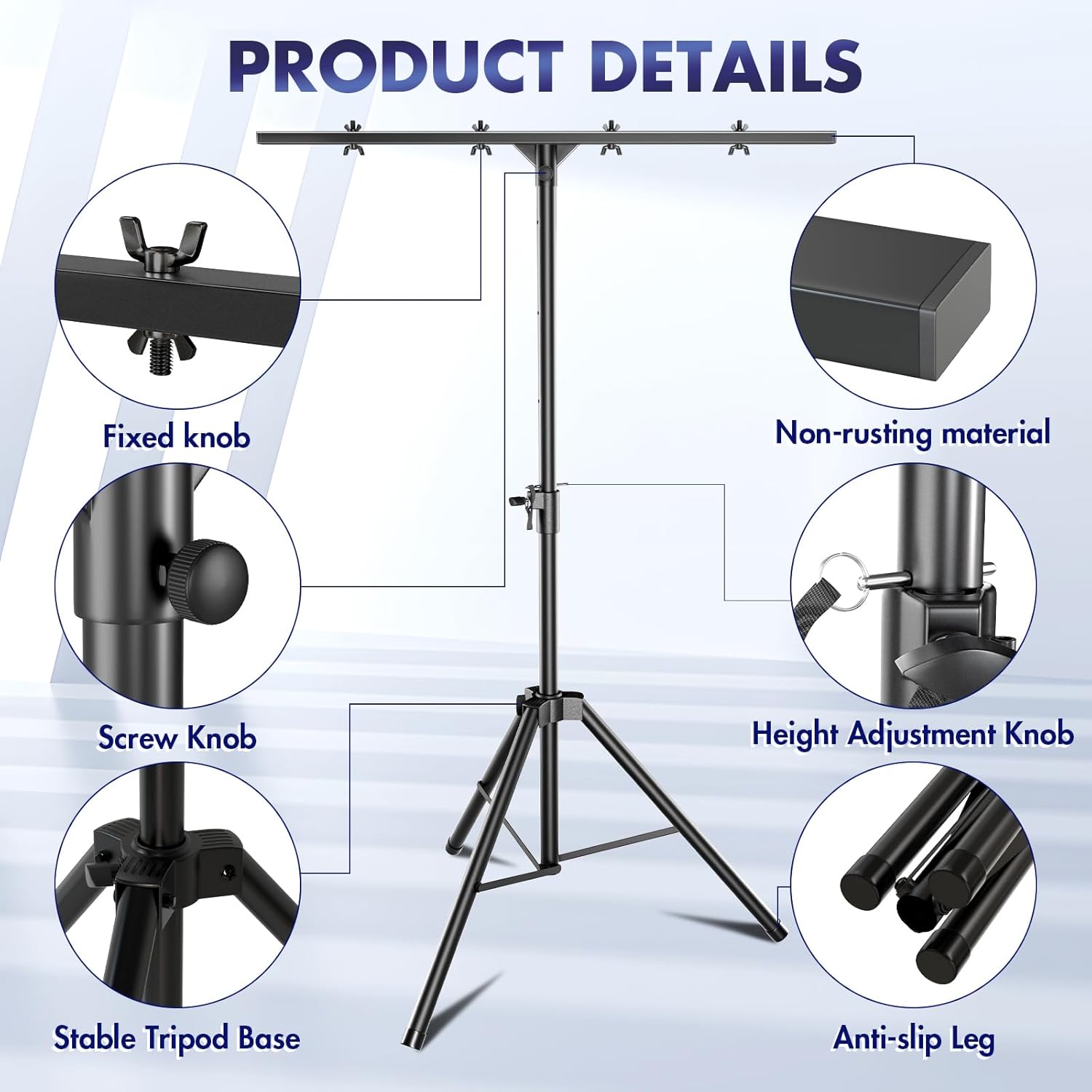 Qoope DJ Light Stand T-Bar,Heavy-Duty DJ Stand Tripod Adjustable DJ Lighting Stand Portable Stage Light Stand for DJ Lights Bar Party Light