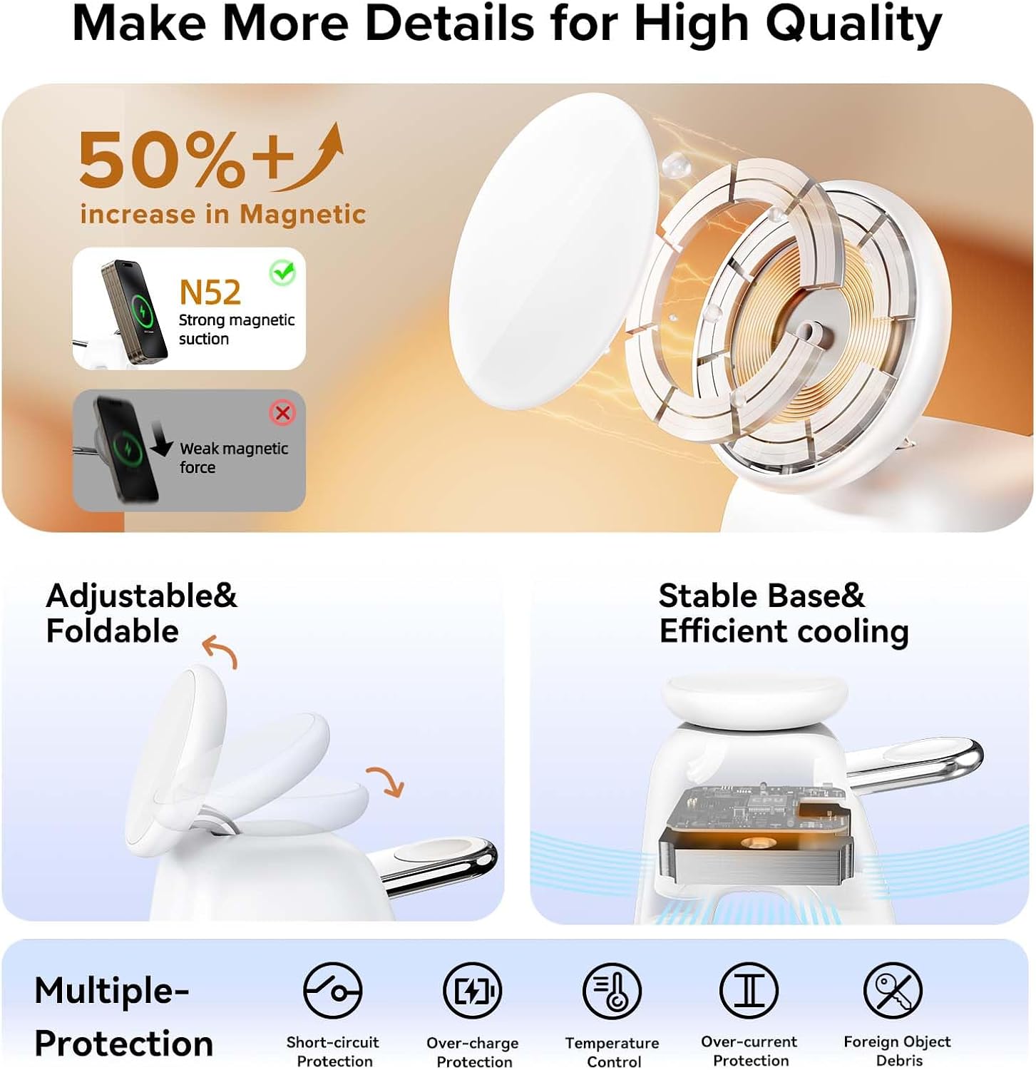 - Compatible with Mag-safe Charging: Works seamlessly with MagSafe apple devices, including iPhone 16/15/14/13/12 series, Apple Watch, or AirPods. No need to remove your Mag-Safe case—just snap your device in place for reliable, high-speed charging
