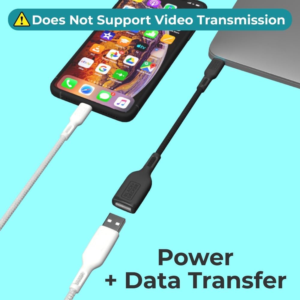 BLACK+DECKER USB C to USB A Adapter, USB C Male to USB Female Adapter Nylon Braid, Type C OTG Cable Compatible w/iPhone 16 15 Pro, MacBook Pro 2022/Air/Mini, iPad—2 Pack, 3" (Black)