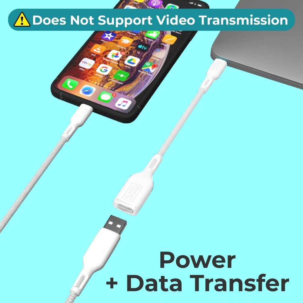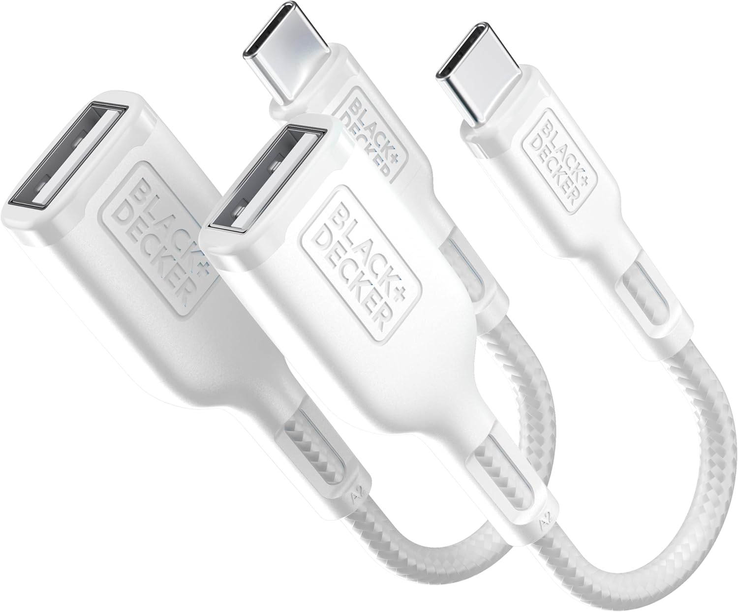 BLACK+DECKER USB C to USB A Adapter, USB C Male to USB Female Adapter Nylon Braid, Type C OTG Cable Compatible w/iPhone 16 15 Pro, MacBook Pro 2022/Air/Mini, iPad—2 Pack, 3" (White)