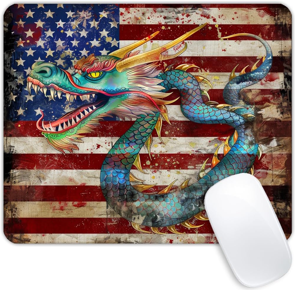 Square Mouse Pad Green Dragon with National Flag-1,Gaming Mouse Pads for Desk,Soft Computer Waterproof Non-Slip Mouse Mat