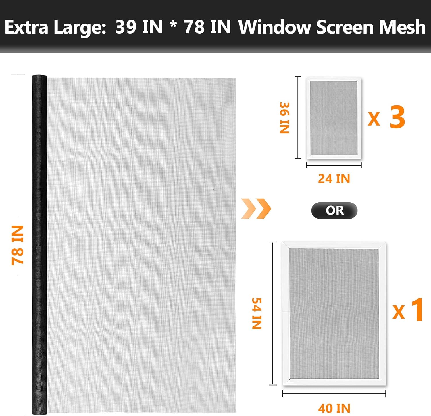 - Extra Large Screen Mesh: The window screen mesh is sufficient to replace multiple standard-sized windows. Made of durable fiberglass material, it can be easily cut and is wear-resistant, allowing you to DIY as desired