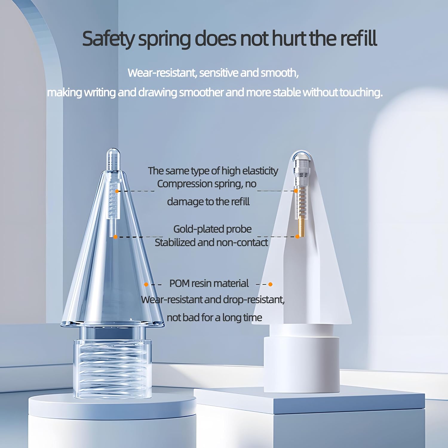 - ăWear-Resistant, Sensitive and Smoothă: The upgraded gold-plated metal iPencil nib is highly polished and wear-resistant, so it won't scratch the iPad screen. It has a built-in highly elastic compression spring with the same high-pressure sensitivity as the original, which makes writing and drawing smooth, stable and non-contact.