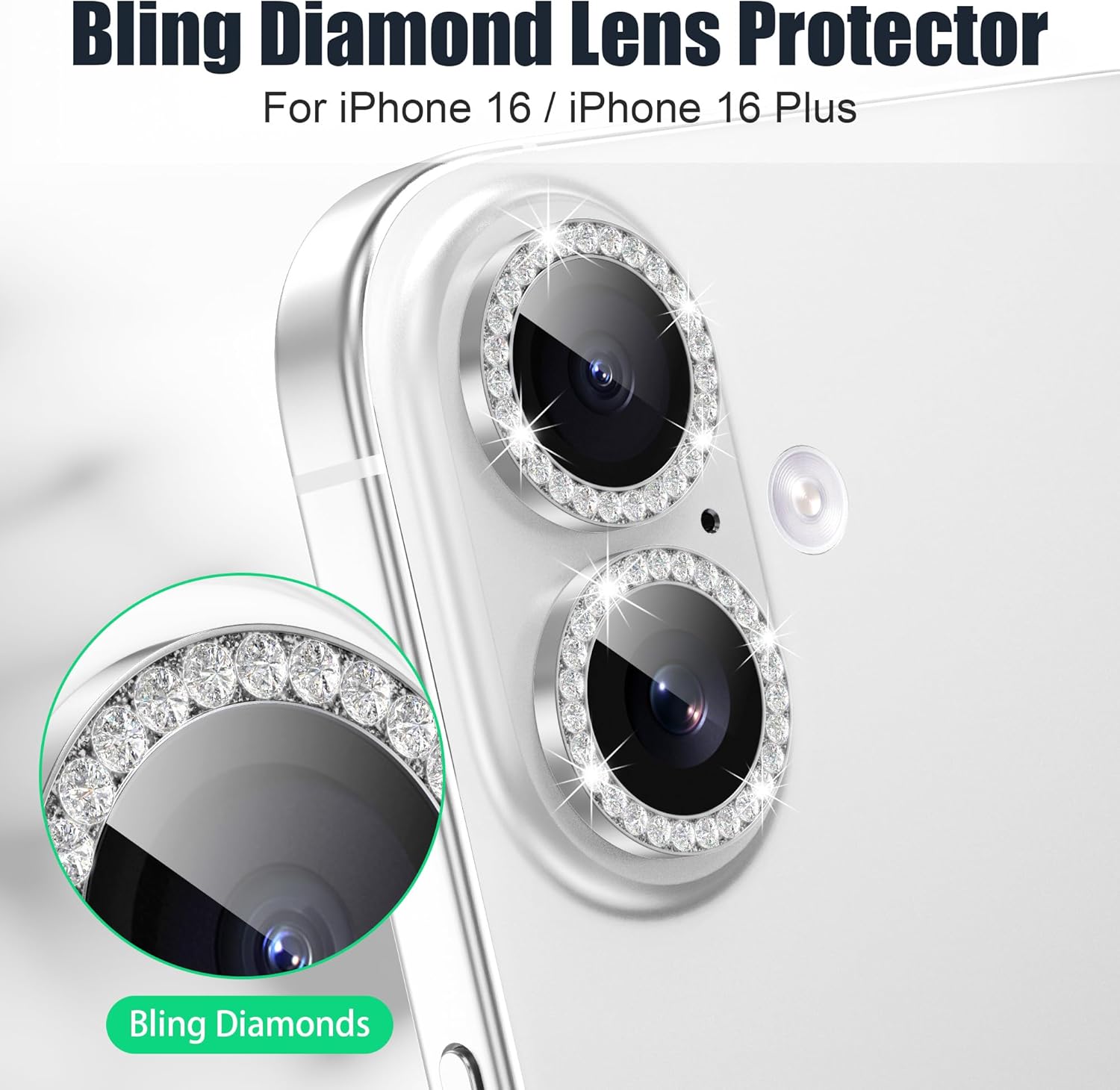 - ā[Two Bling Effects] There are 3 bling diamond rings and d 3 bling glitter rings in the package. Free to match according to your own personal preferences. These rings glass are optical grade, protect your iPhone 16 Plus / 16 camera lens from damage and scratches and has no effect on taking photos. Fully high transmittance sapphire glass with AR anti-reflection function: Camera anti-fall protection and Bling Bling Effect and Fully restored image quality.