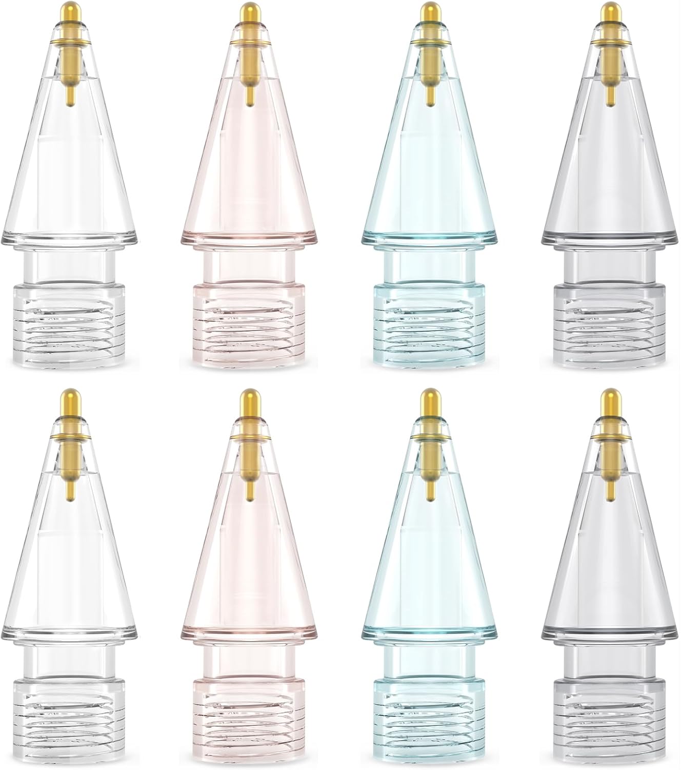 NIUTRENDZ 4 Pack Replacement Tips for Apple Pencil 2nd Generation and 1st Generation Fine Point Metal Tip, Wear-Resistant & Precise Control (Clear, Pink, Blue and Grey, 1.05mm + 1.95mm)