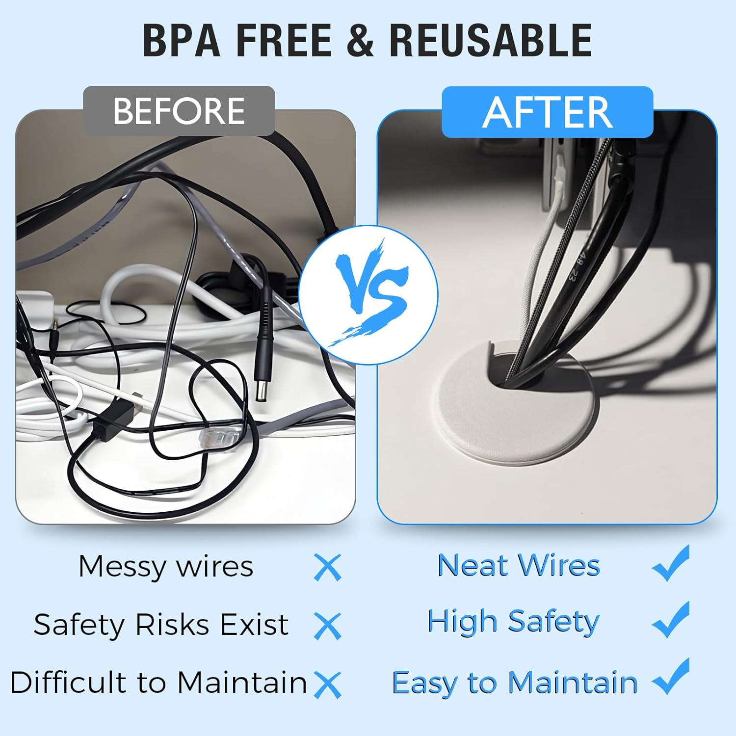 - Maintain Safety: The desk wire hole insert helps to organize cables on your desktop, keeping it tidy and improving productivity; The smooth surface protects cables from sharp edges, reduces bending and pulling of cables, extends cable life and ensures a safe work area
