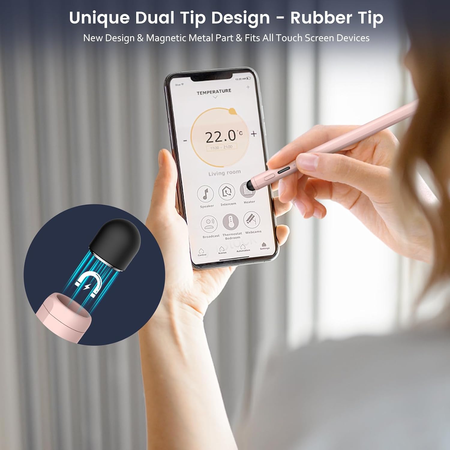 - šćLatest Dual-Tip Stylus - Versatile Rubber TipćThis apple pen represents a novel breakthrough by combining a rubber tip with the active fine tip. It operates seamlessly on any capacitive touchscreen, from smartphones to tablets and smartwatches. When your stylus pen runs out of battery, it serves as the perfect backup. The tip includes a magnetically attachable metal component, making replacement easy and convenient. (Note: The rubber tip is compatible with touchscreens, while the fine tip is designed for iPads.)