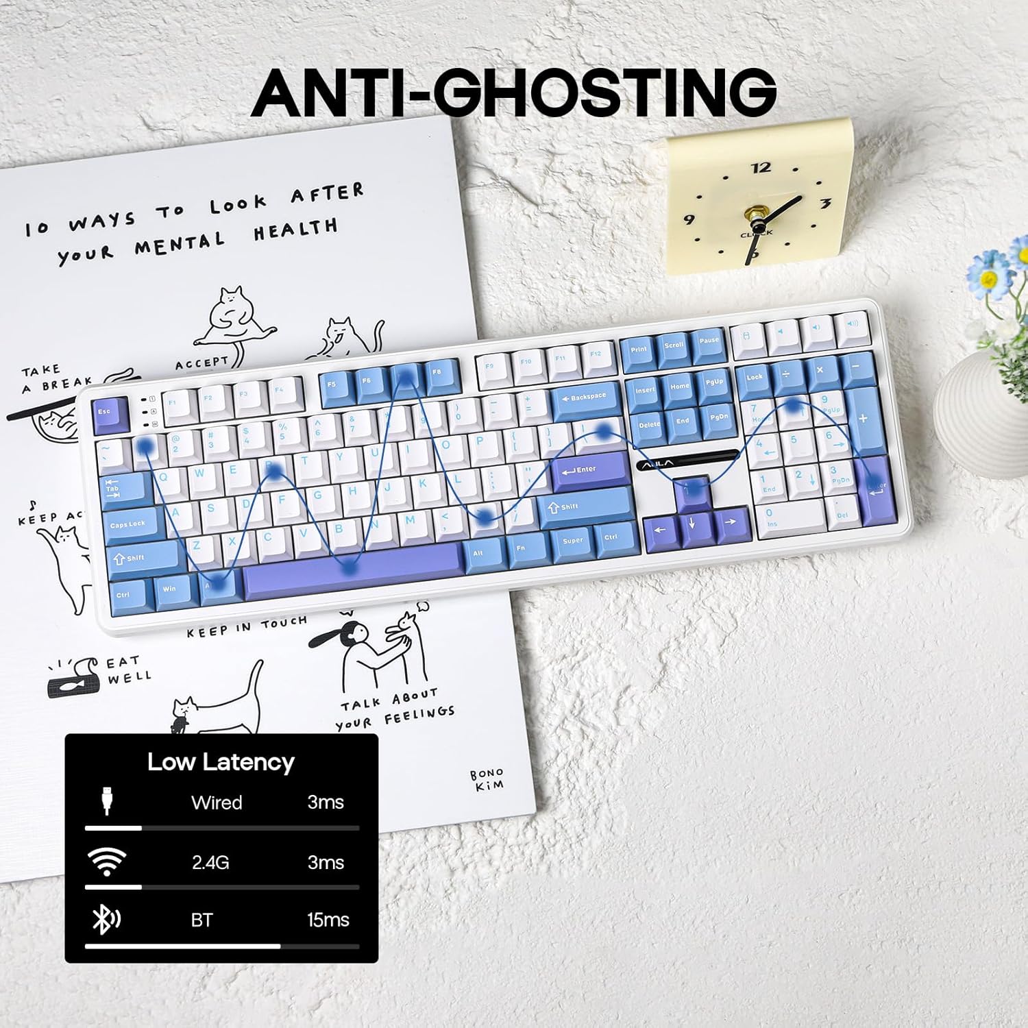 EPOMAKER Aula F108 Wireless Gaming Keyboard, Full Size Mechanical Keyboard with 4000mAh Battery, 108 Hot-Swappable and Programmable Keys, RGB Backlight, for Mac/PC/Android (White&Blue)