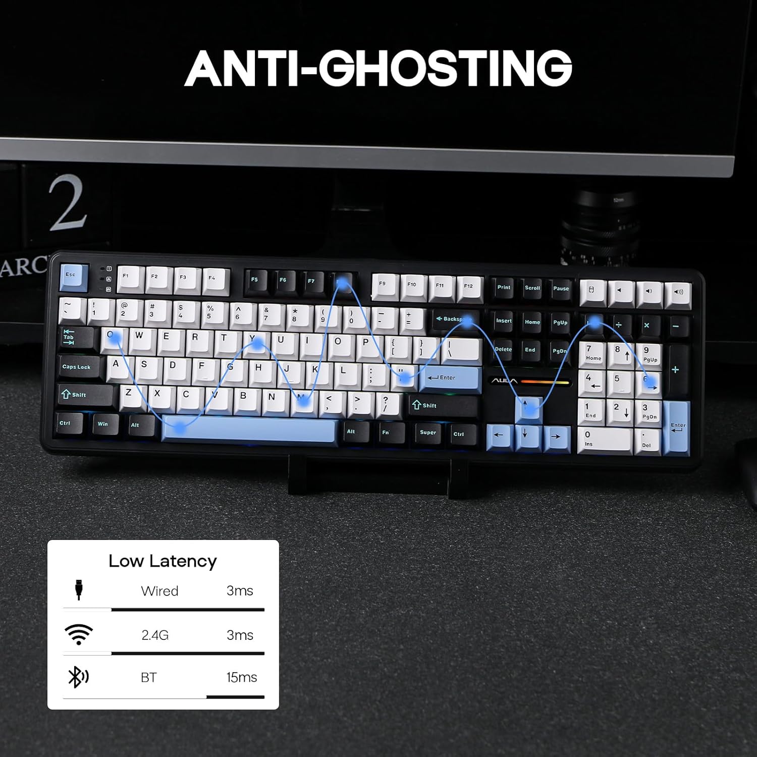 EPOMAKER Aula F108 Wireless Gaming Keyboard, Full Size Mechanical Keyboard with 4000mAh Battery, 108 Hot-Swappable and Programmable Keys, RGB Backlight, for Mac/PC/Android (Blue&White&Black)